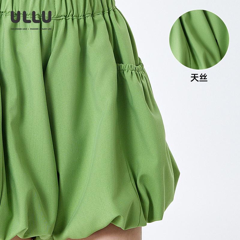 优露童装女童短裤ULLU夏新款清爽绿色天丝舒适可爱蓬蓬灯笼裤短裤