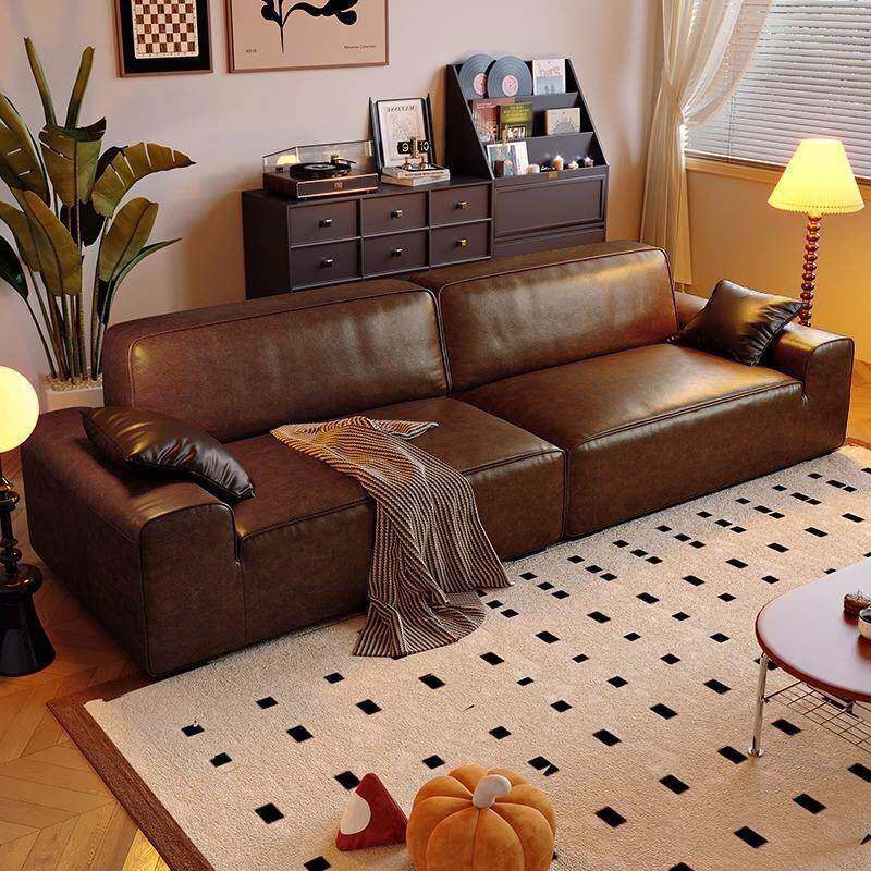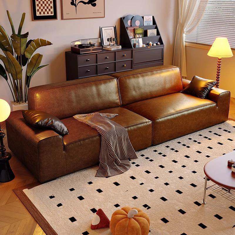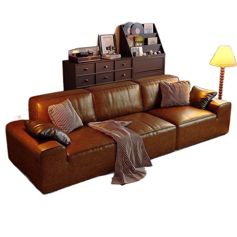 复古猫抓油蜡皮大黑牛沙发小户型客厅直排中古高级皮艺沙发出租房