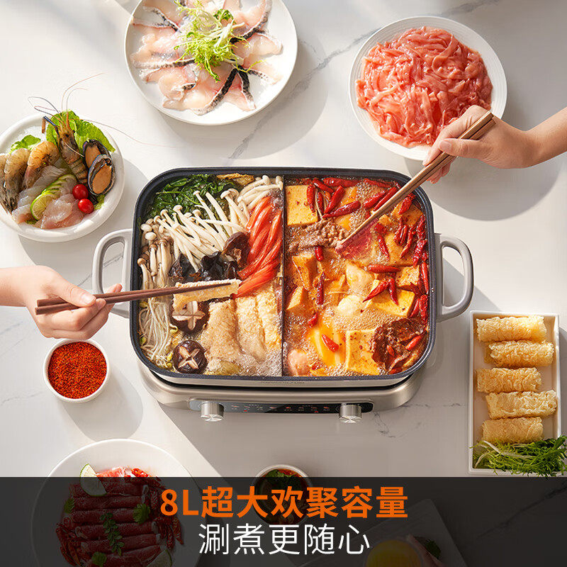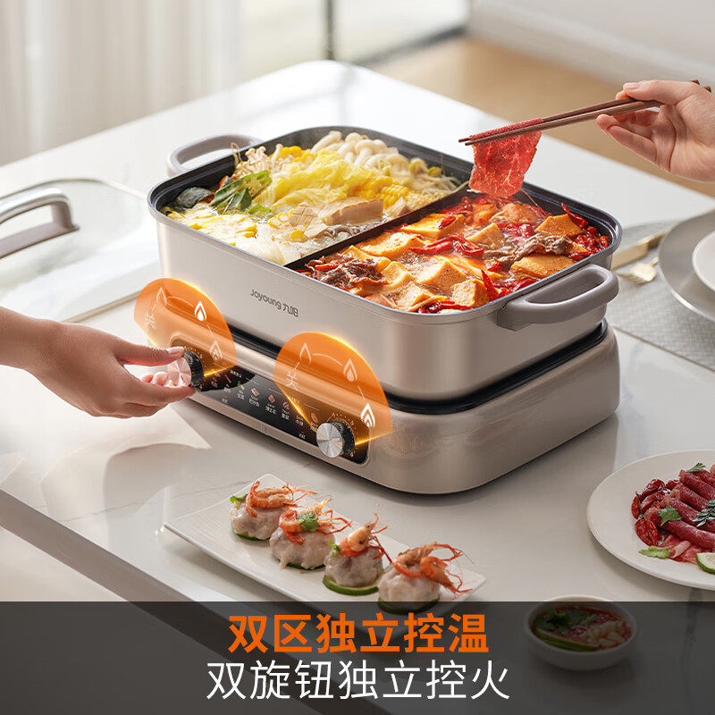 九阳秒涮电火锅家用多功能分控分体锅煎炒电热煮锅鸳鸯锅烹饪机