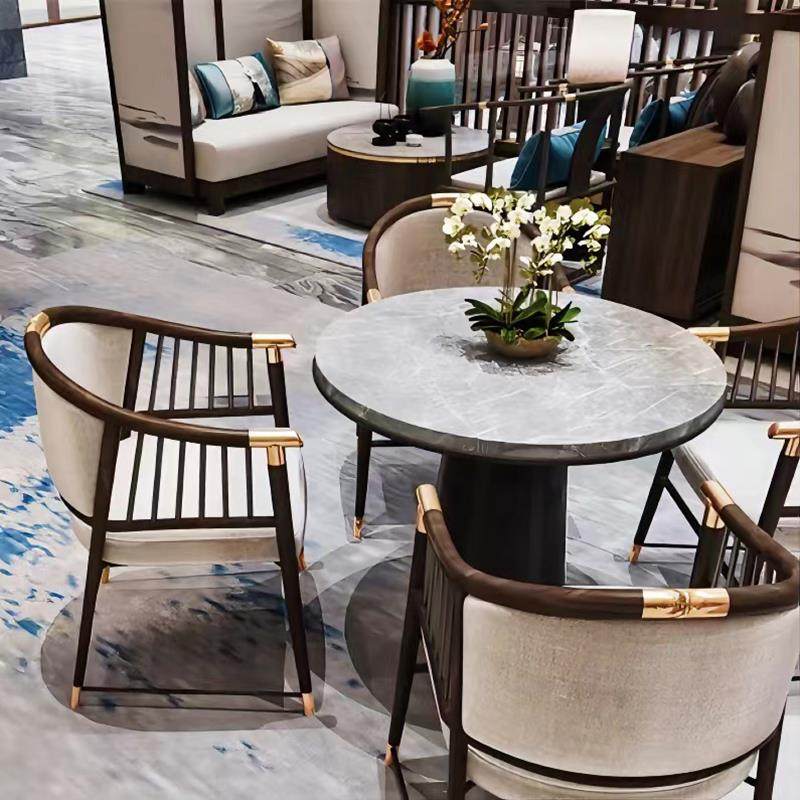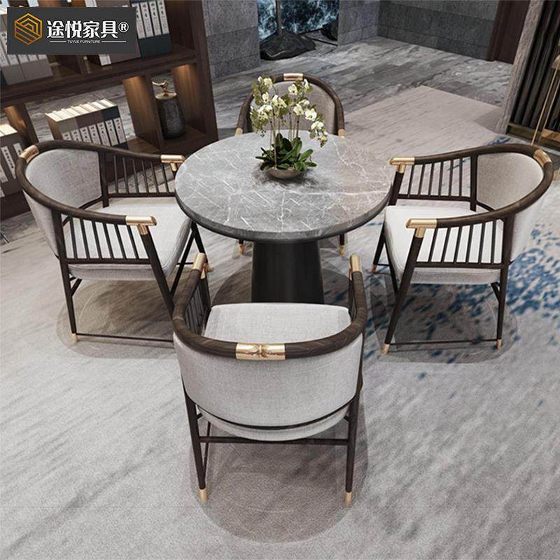 售楼处洽谈桌椅组合轻奢新中式售楼部大厅接待一桌四椅圆形谈判桌