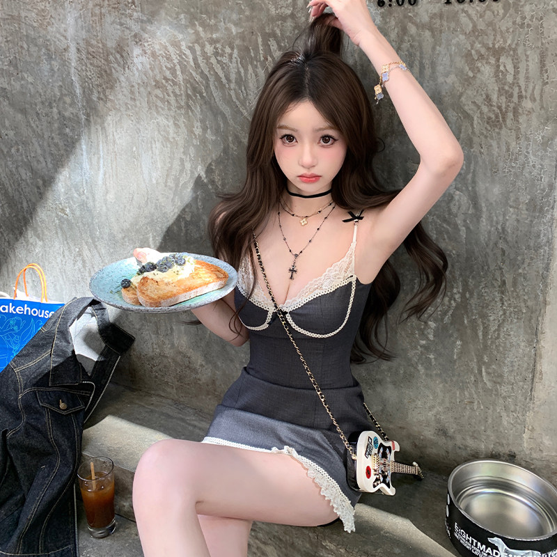 你的懒懒llan【可爱且随性】两色纯欲性感蕾丝蝴蝶结吊带连衣裙女