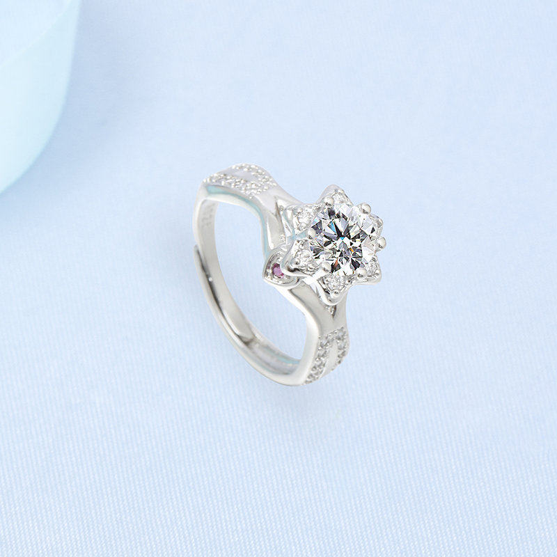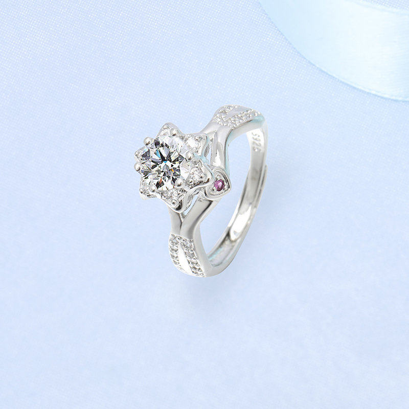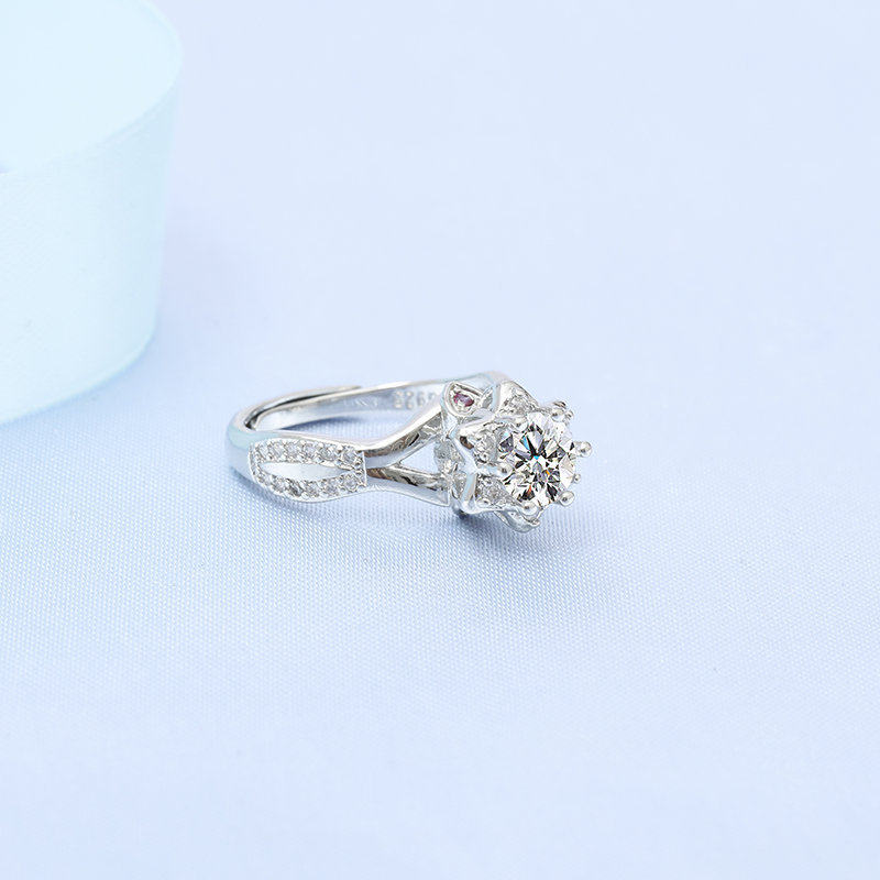 S925镀银韩版时尚硞石爱心镶钻戒指少女简约甜美求婚订婚结婚戒指