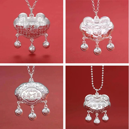长命锁宝宝银项链999纯银儿童银锁小孩男女婴儿满月礼物银饰镯子