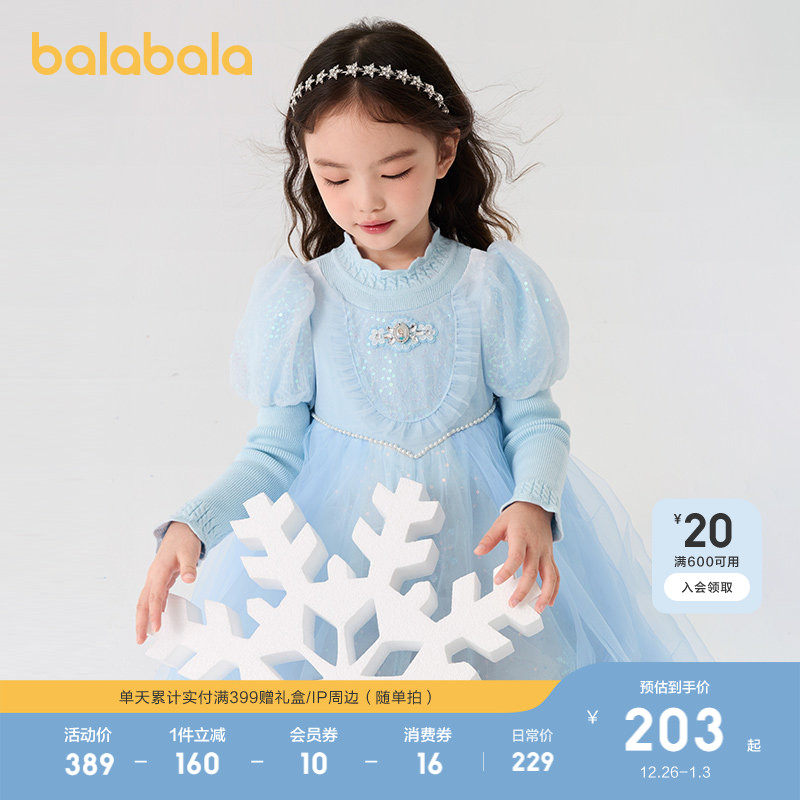 【艾莎IP】巴拉巴拉女童连衣裙网纱公主裙子秋冬款甜美泡泡袖洋气