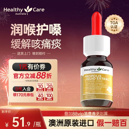 HealthyCare澳洲进口蜂胶滴剂滴液缓解口腔咽喉教师润喉护嗓免疫