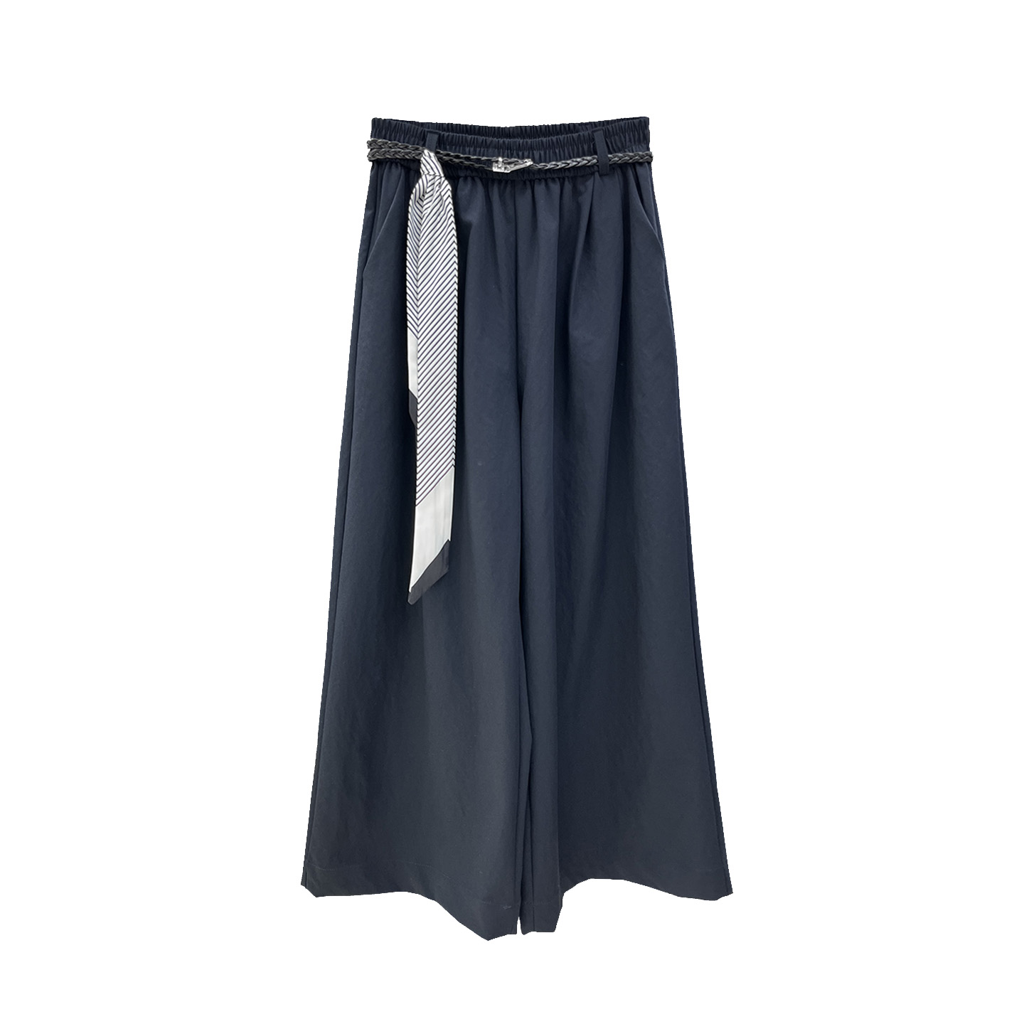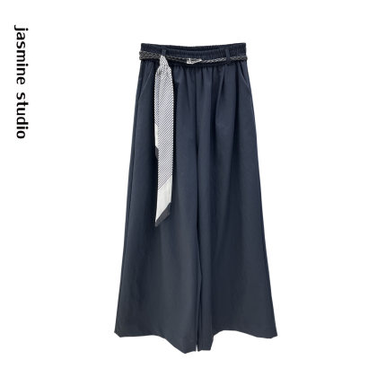 韩系时尚别致高级感丝巾腰带阔腿裤女夏季新款宽松显瘦九分休闲裤