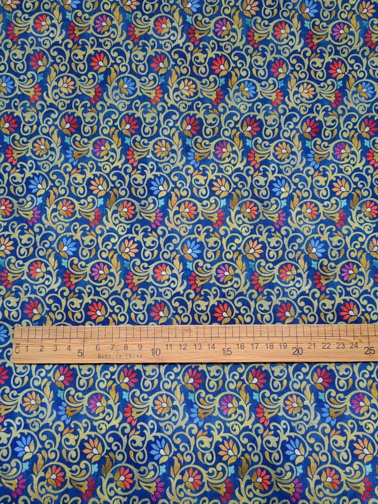 宝蓝晕染吉祥纹外贸平纹棉布印花布手工拼布书衣娃衣面料家居桌布