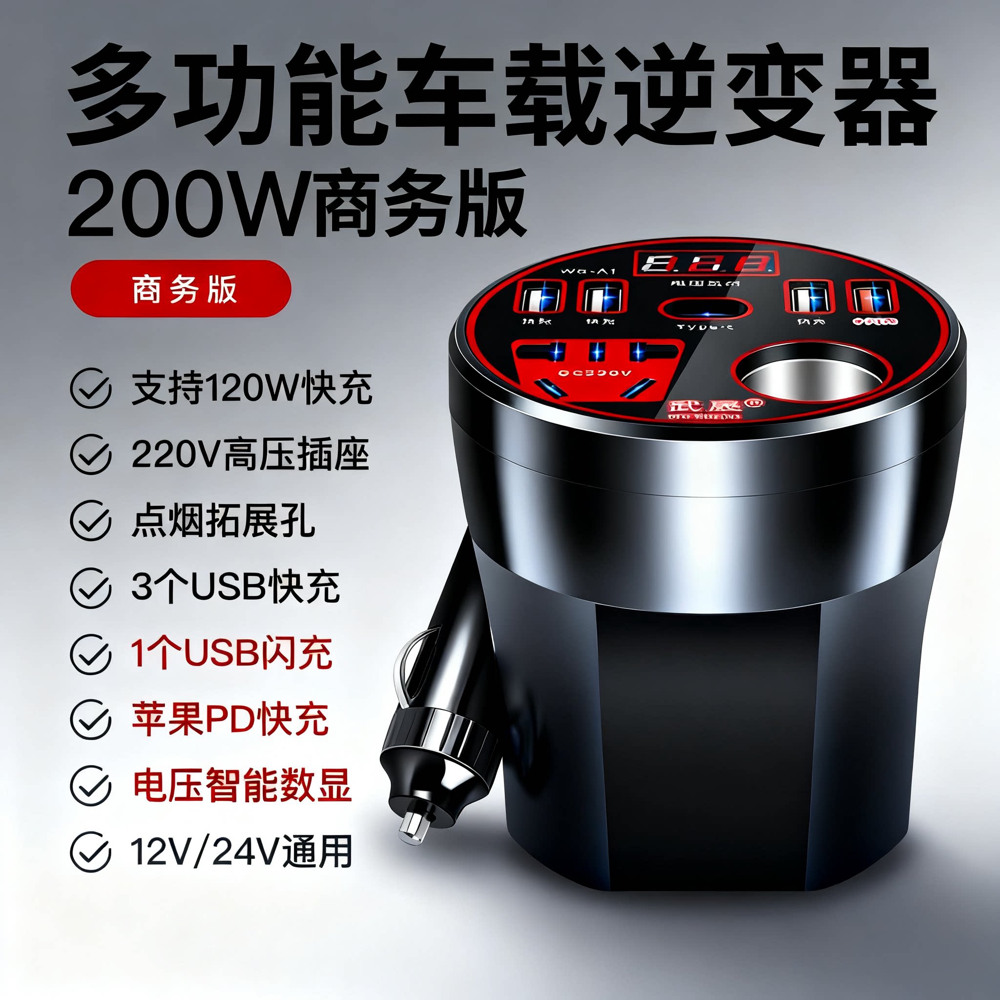 车载逆变转换器12v24v转220v汽货通用点烟器插座USB扩展快充电器