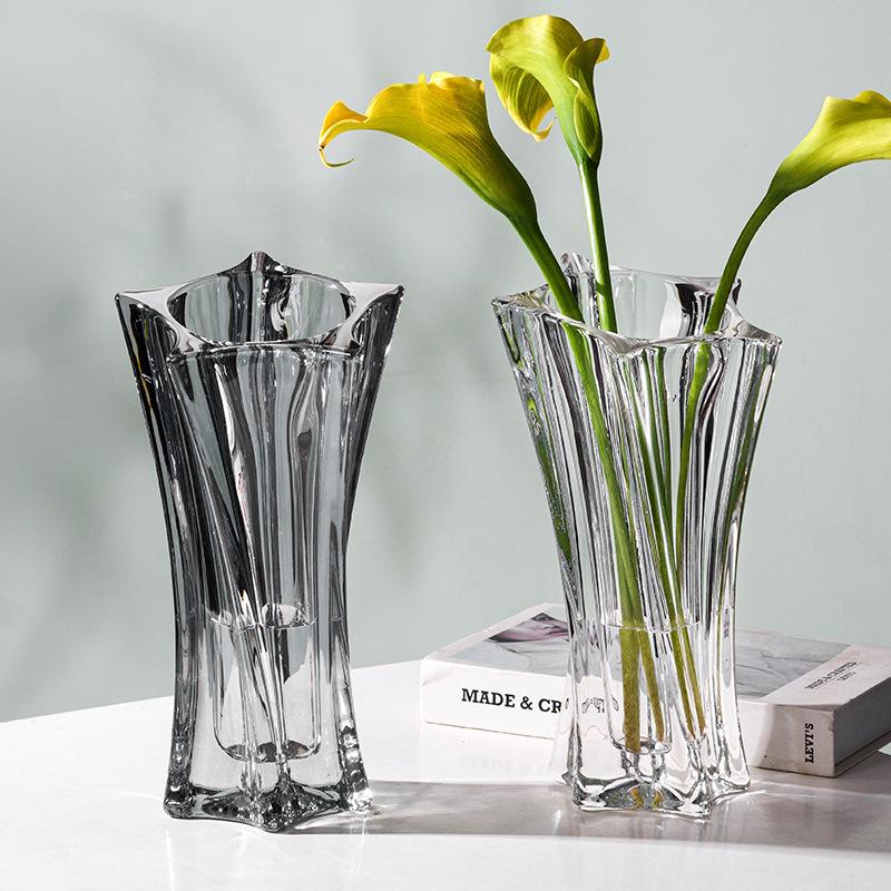 网红捷克风格透明插花水养鲜花客厅摆件轻奢高级感玻璃花瓶小众
