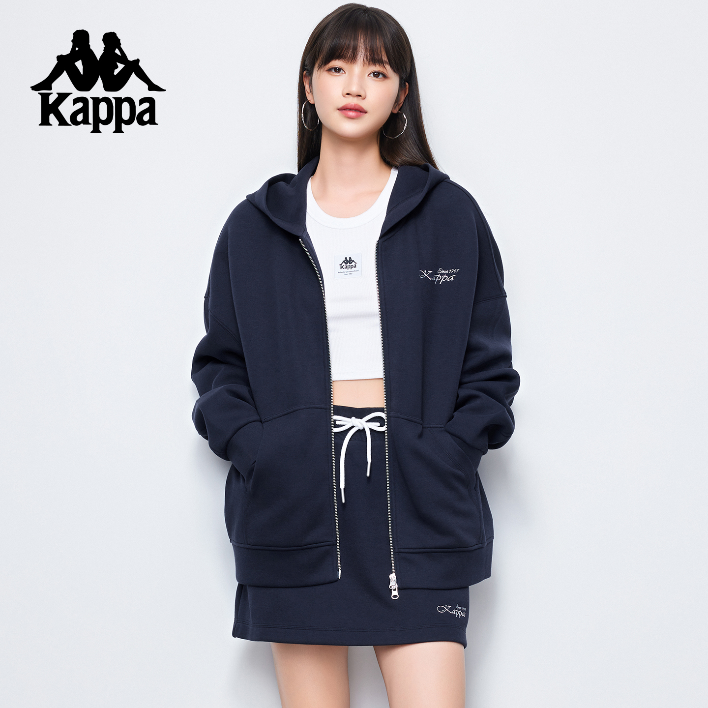 Kappa卡帕 时尚连帽卫衣外套女2025秋新款拉链开衫休闲宽松上衣
