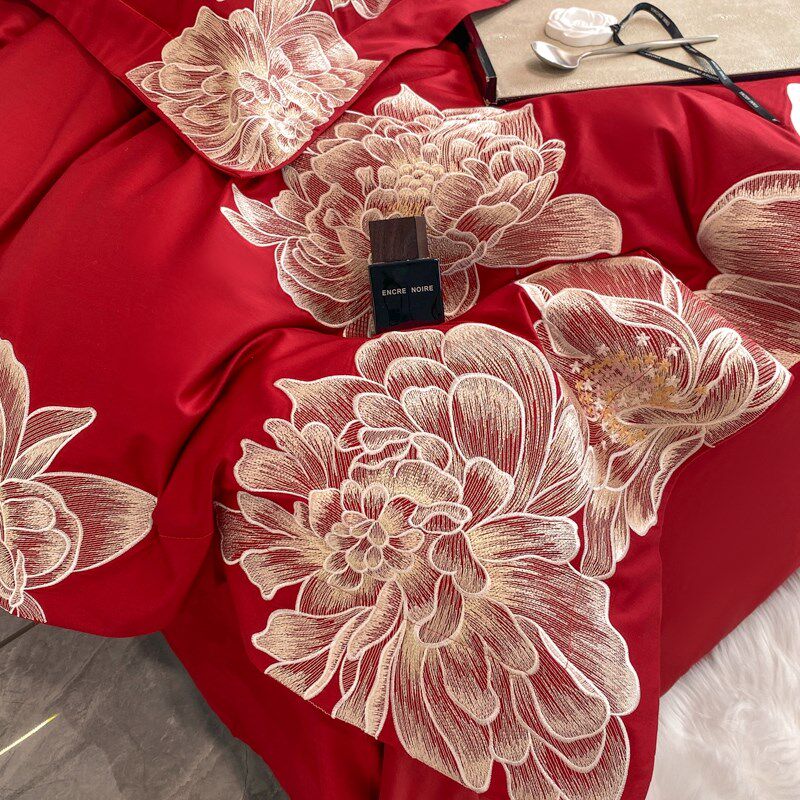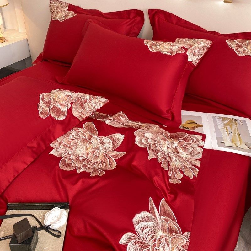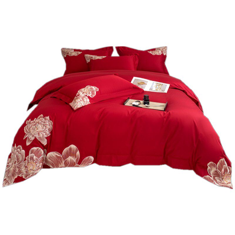高奢华长绒棉婚档纯庆四件结套棉红色床单被套11N079/11全棉婚床