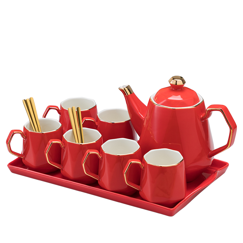 北欧创意 结婚水杯套装家用客厅耐高温杯子茶壶茶杯喜庆礼品套装