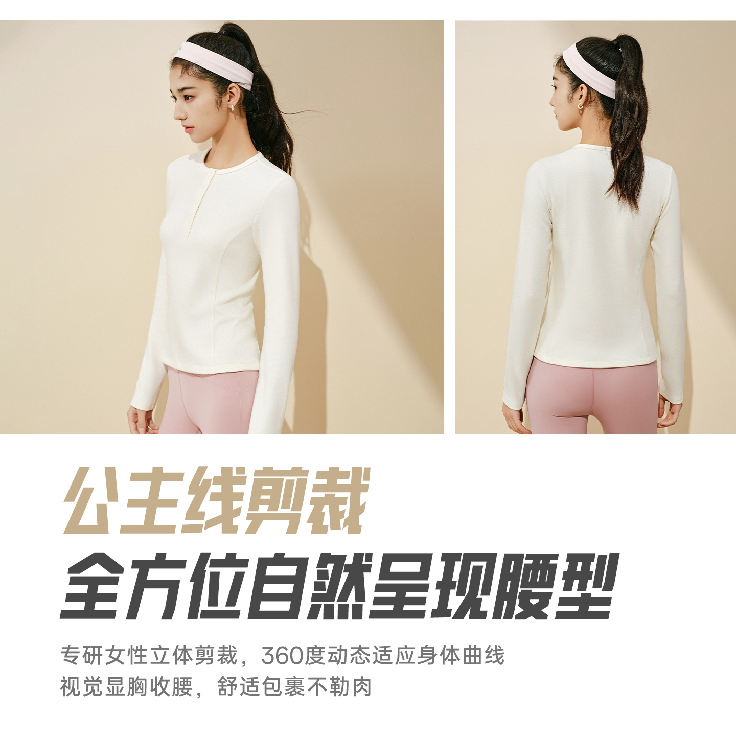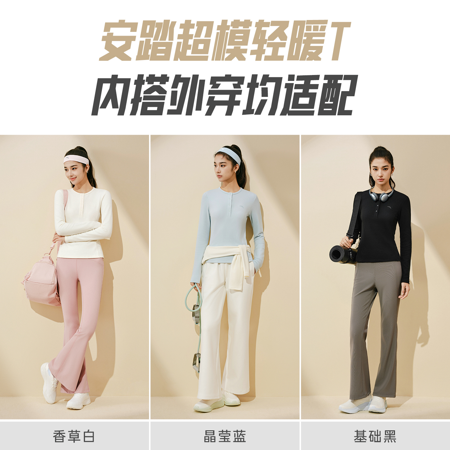 安踏超模T丨加绒小蛮腰修身长袖亨利衫长t恤女冬季打底衫内搭上衣