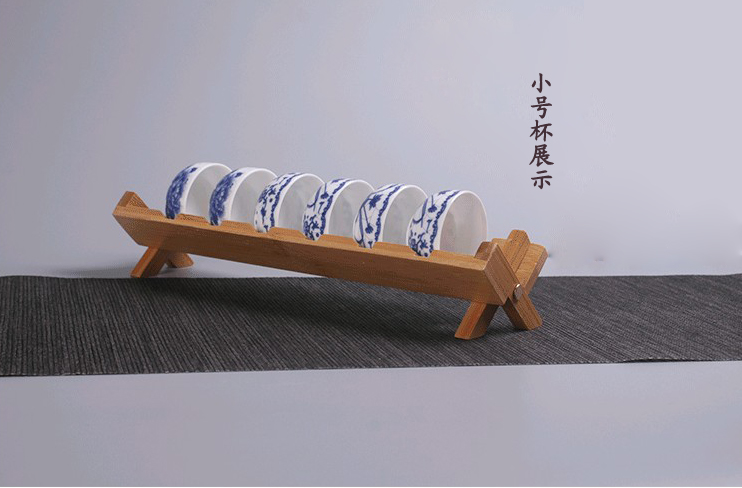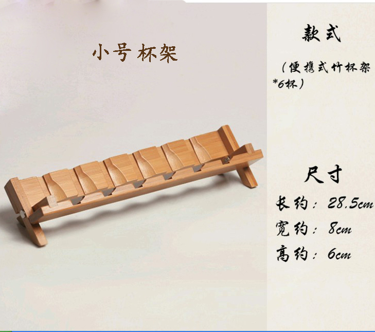 便携式竹凉杯架 折叠茶杯托品茗杯收纳沥水 功夫茶具茶道零配实木