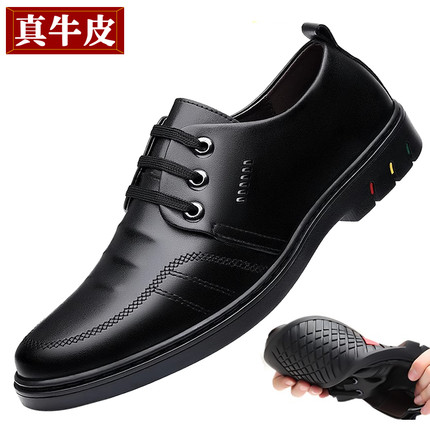 男士休闲皮鞋男款秋冬保暖鞋子男鞋镂空中年爸爸鞋真皮商务休闲鞋