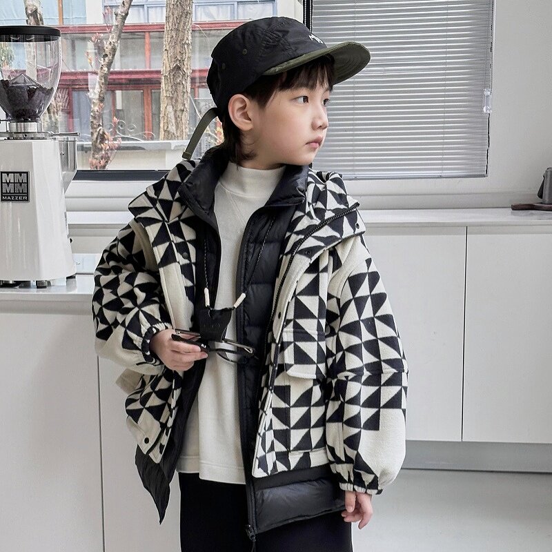 【商场同款】越也男童羽绒两件套休闲三角格拼接2024年冬季新品