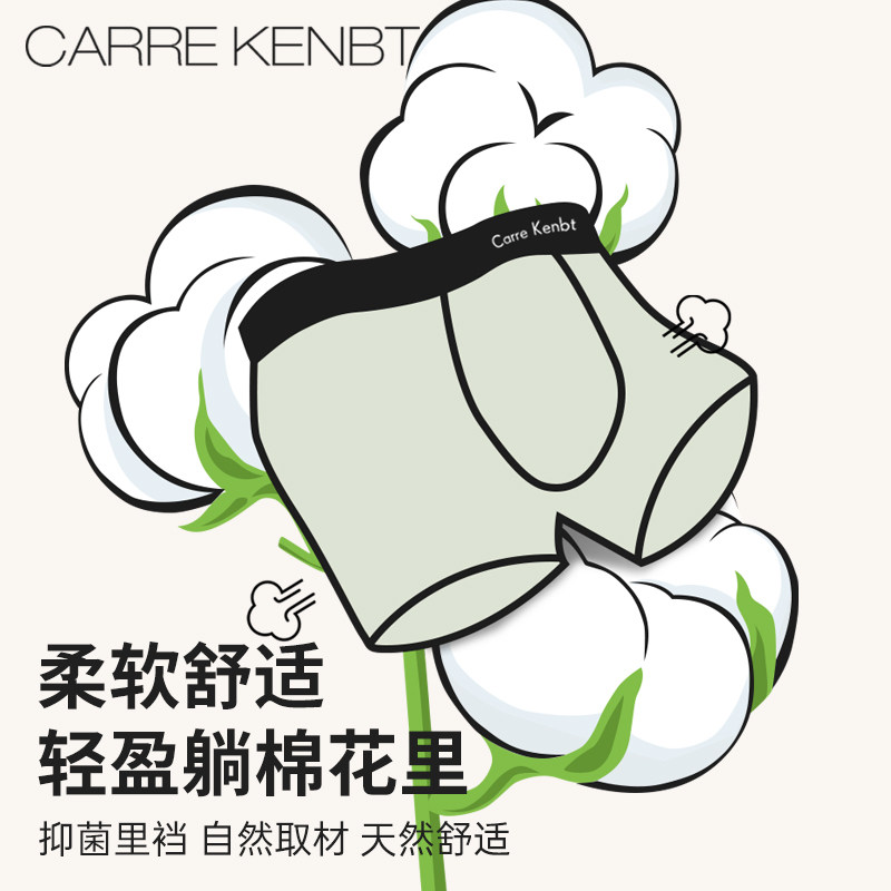 CarreKenbt纯棉男士内裤100%全棉裆抗菌透气四角裤男平角裤头礼盒