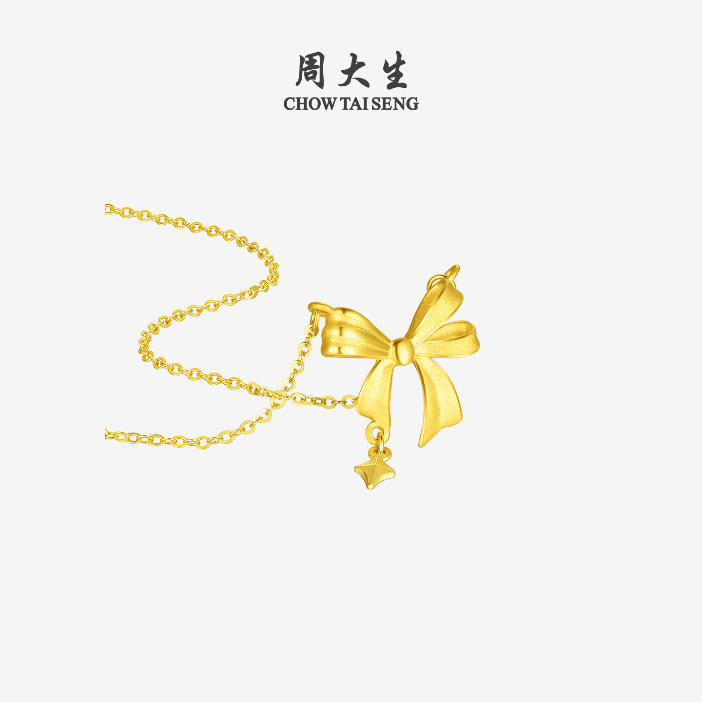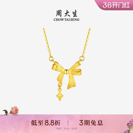 周大生在逃公主黄金项链女足金星芒蝴蝶结锁骨套链吊坠送女友礼物