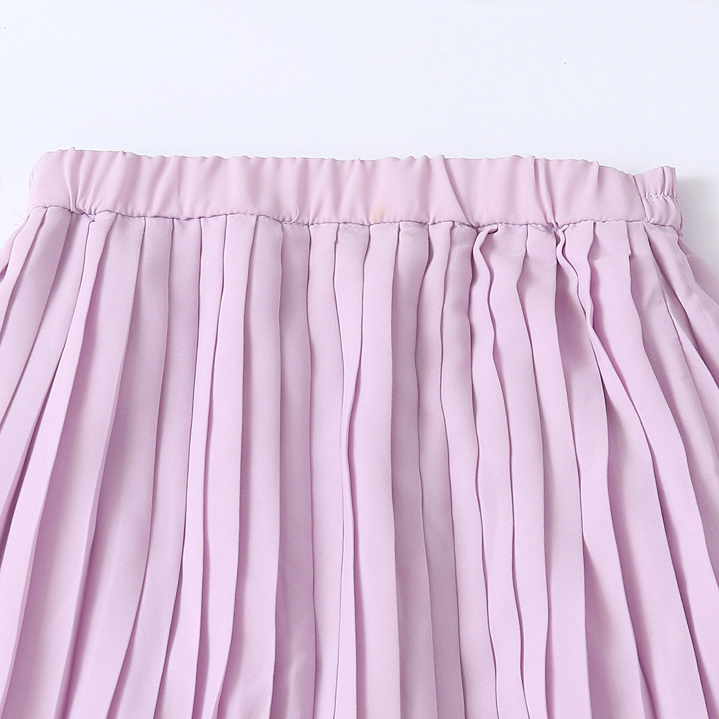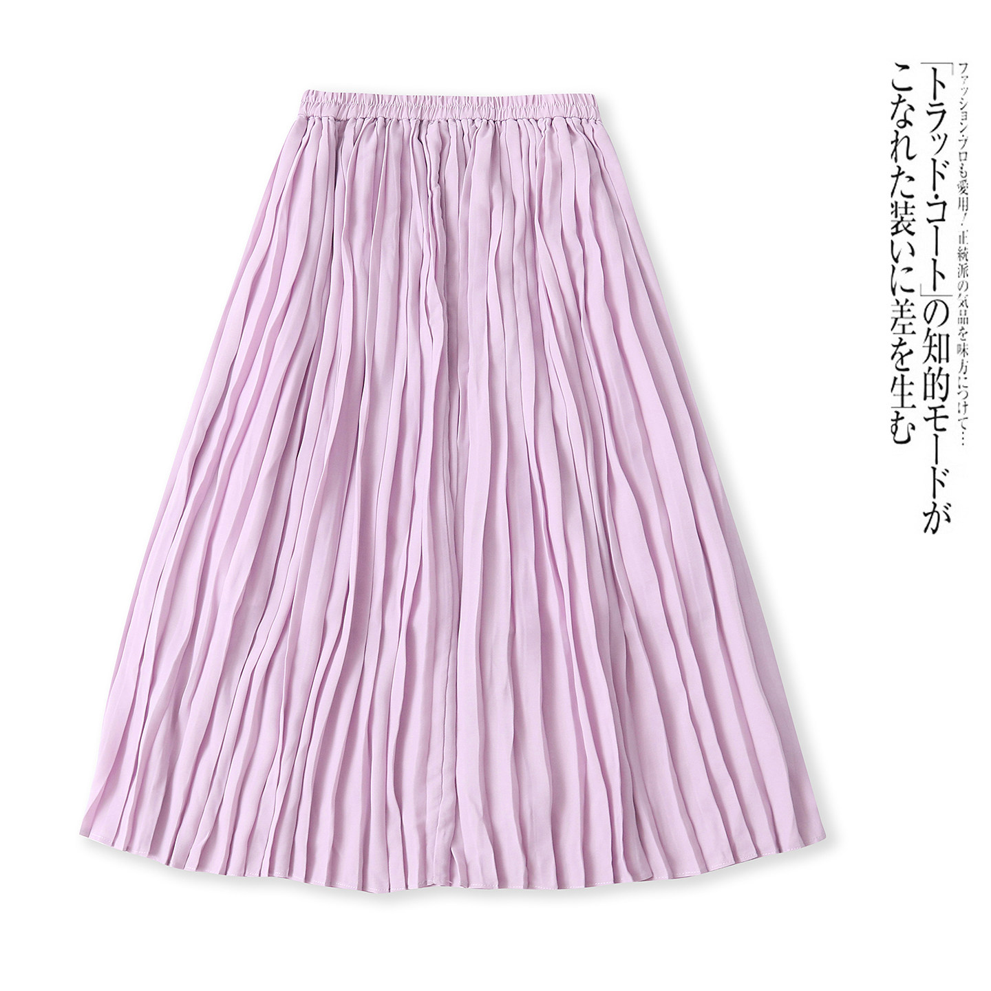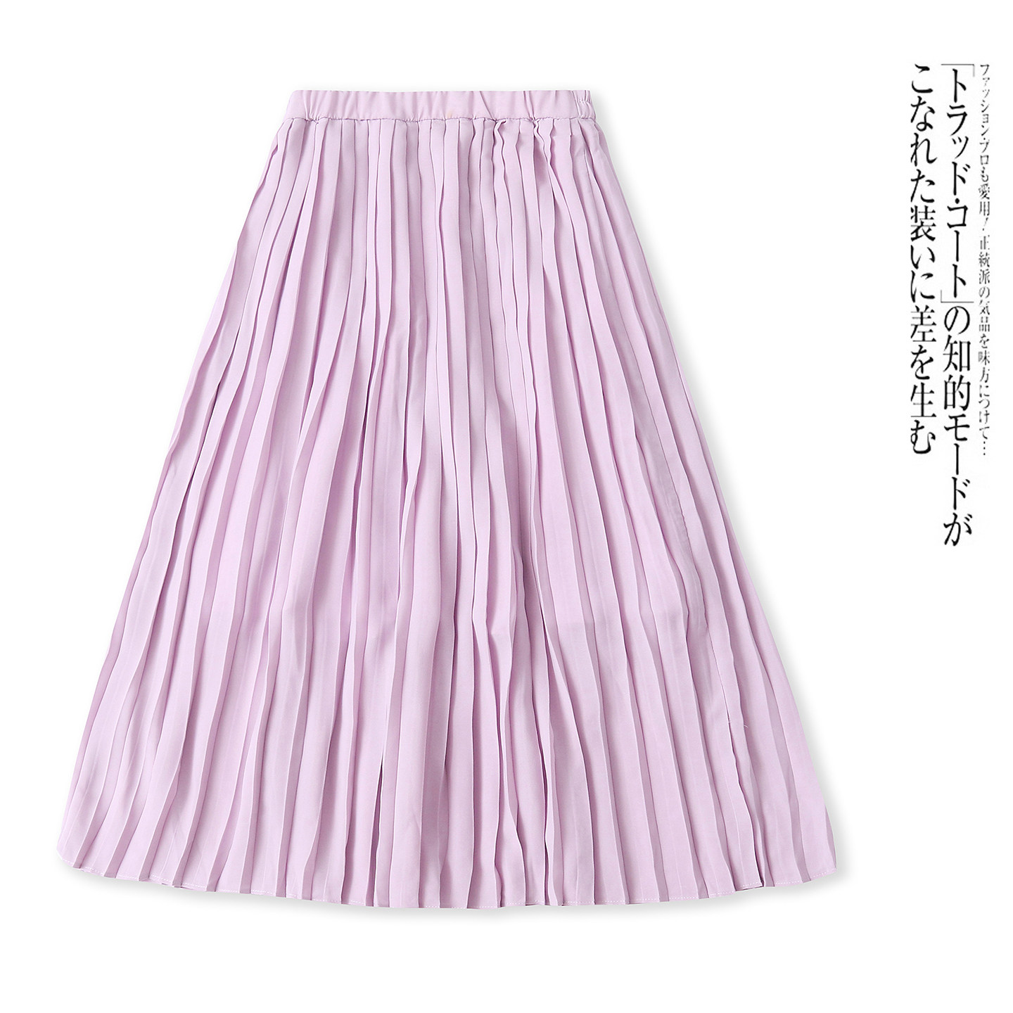 百褶雪纺半身裙 春夏新款外贸女装时尚松紧腰纯色显瘦中长裙32375