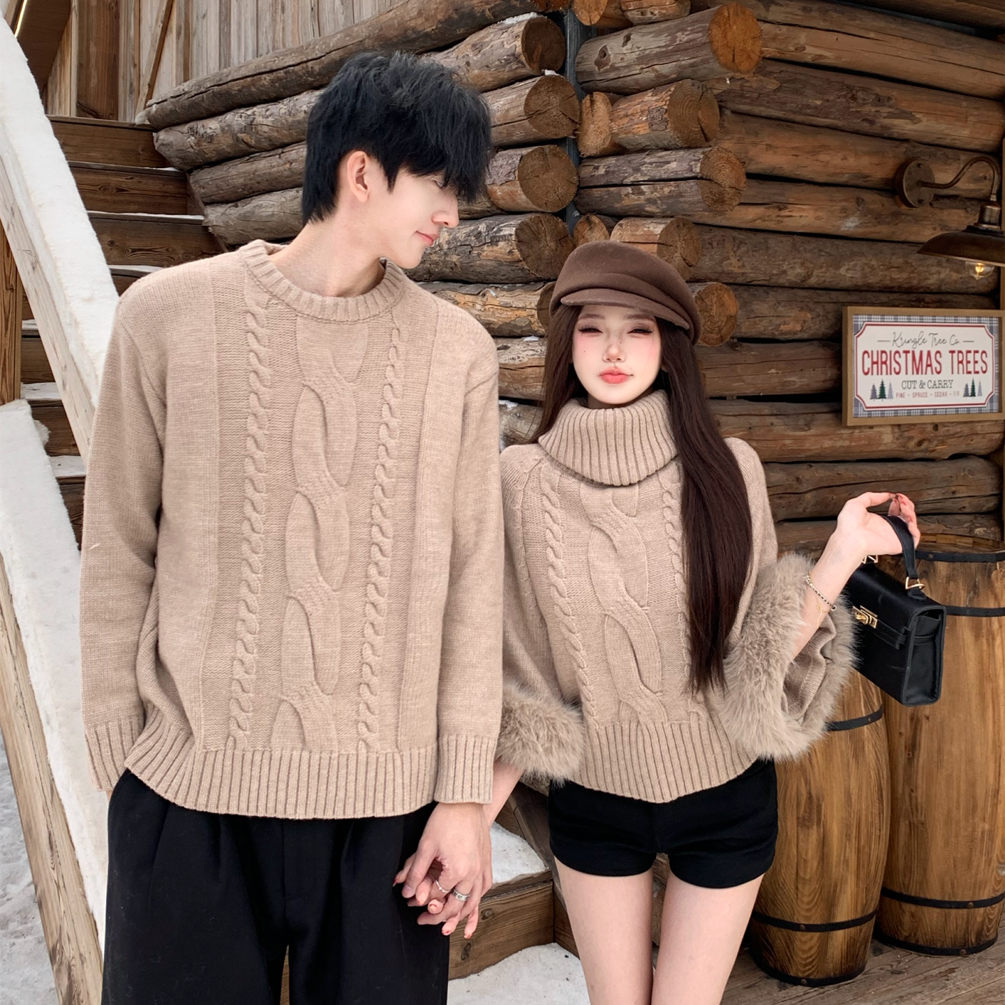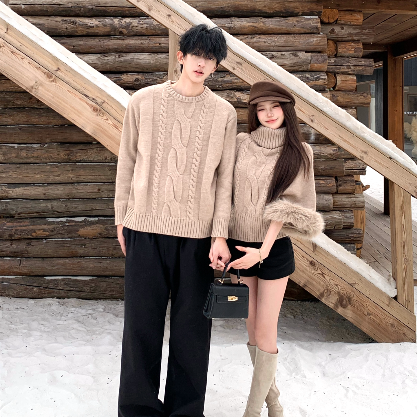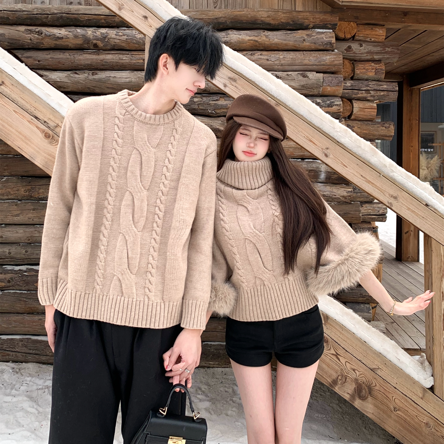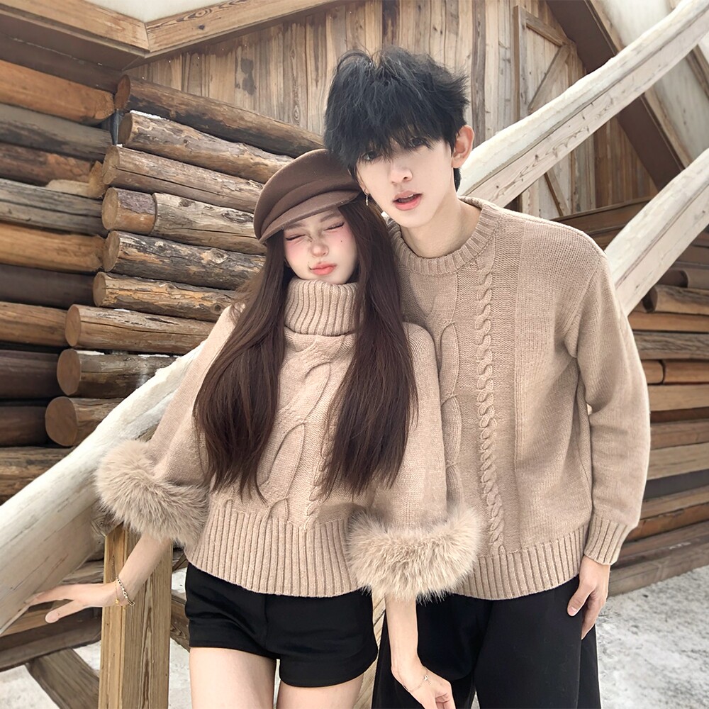 情侣装秋冬2025新款法式复古高领毛衣ins超火网红韩系针织上衣潮