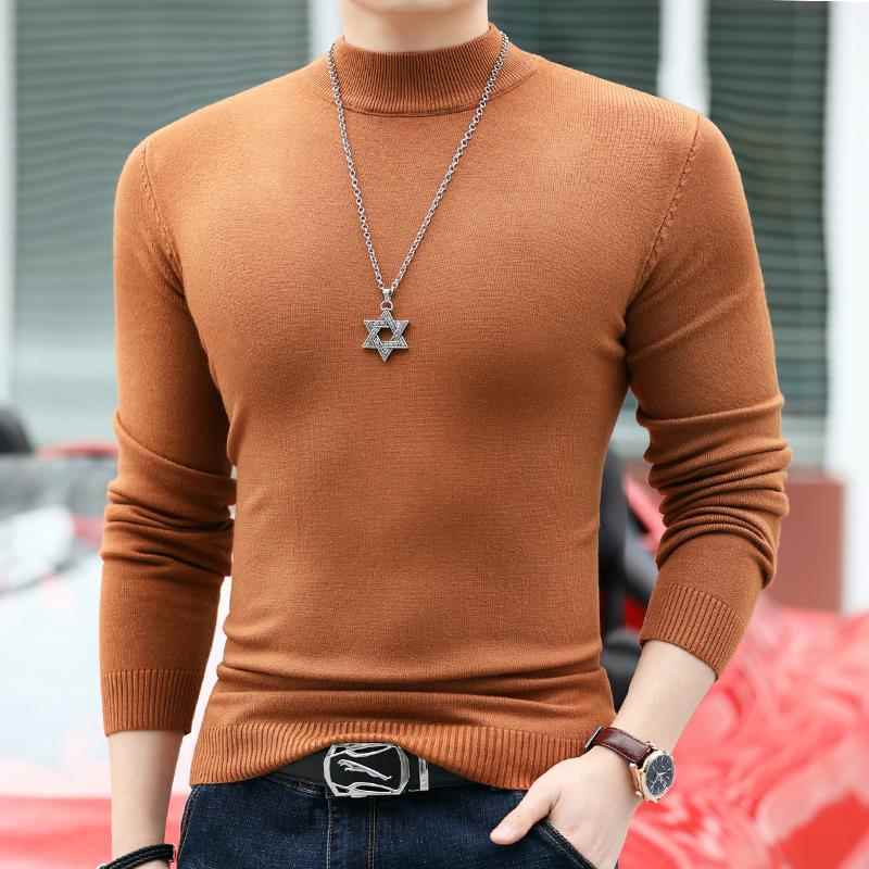 秋冬毛衣男士新款上衣半高领针织大码修身套头保暖厚款内搭1002c
