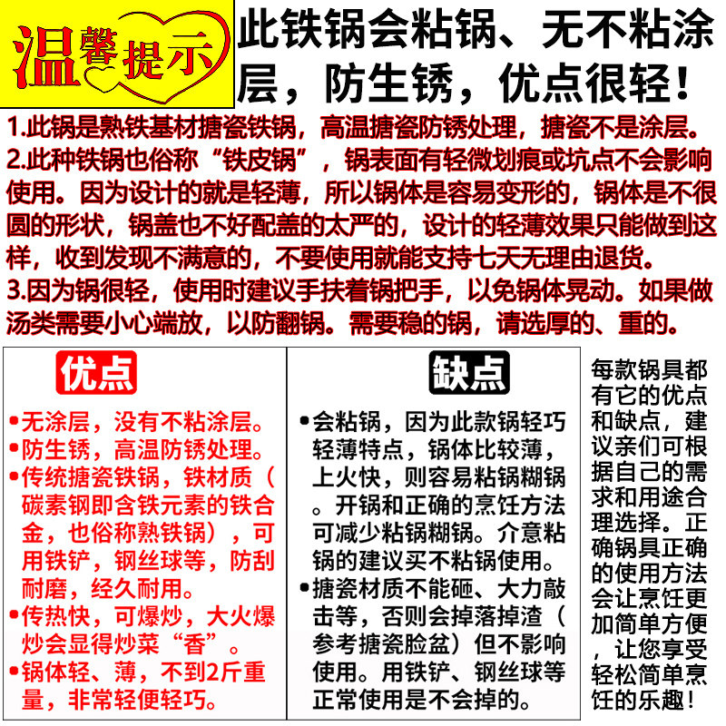 苏泊尔轻便超轻巧轻薄防锈搪瓷炒锅铁锅铁皮锅无涂层家用明火燃气