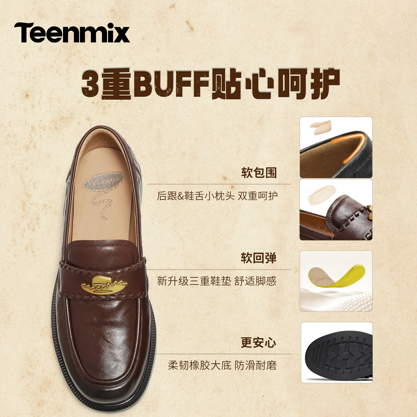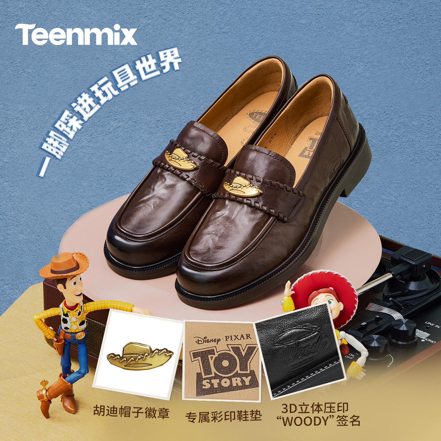 卢昱晓同款天美意玩具总动员联名常青藤乐福鞋羊皮单鞋女软底皮鞋