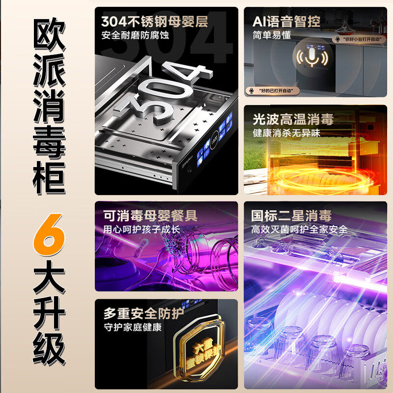 欧派OPPEIN消毒柜家用嵌入式小型家用厨房三层120L大容量高温消毒