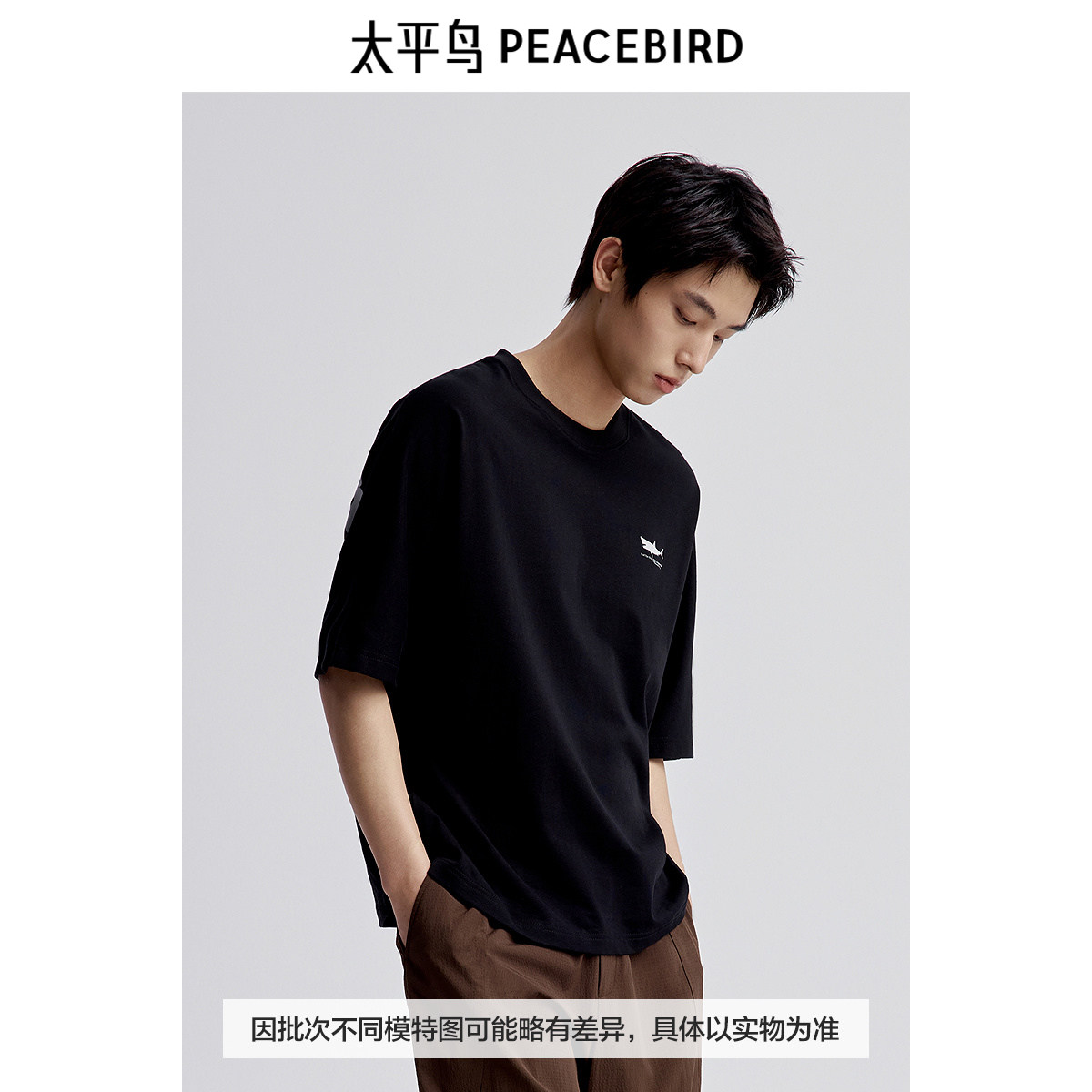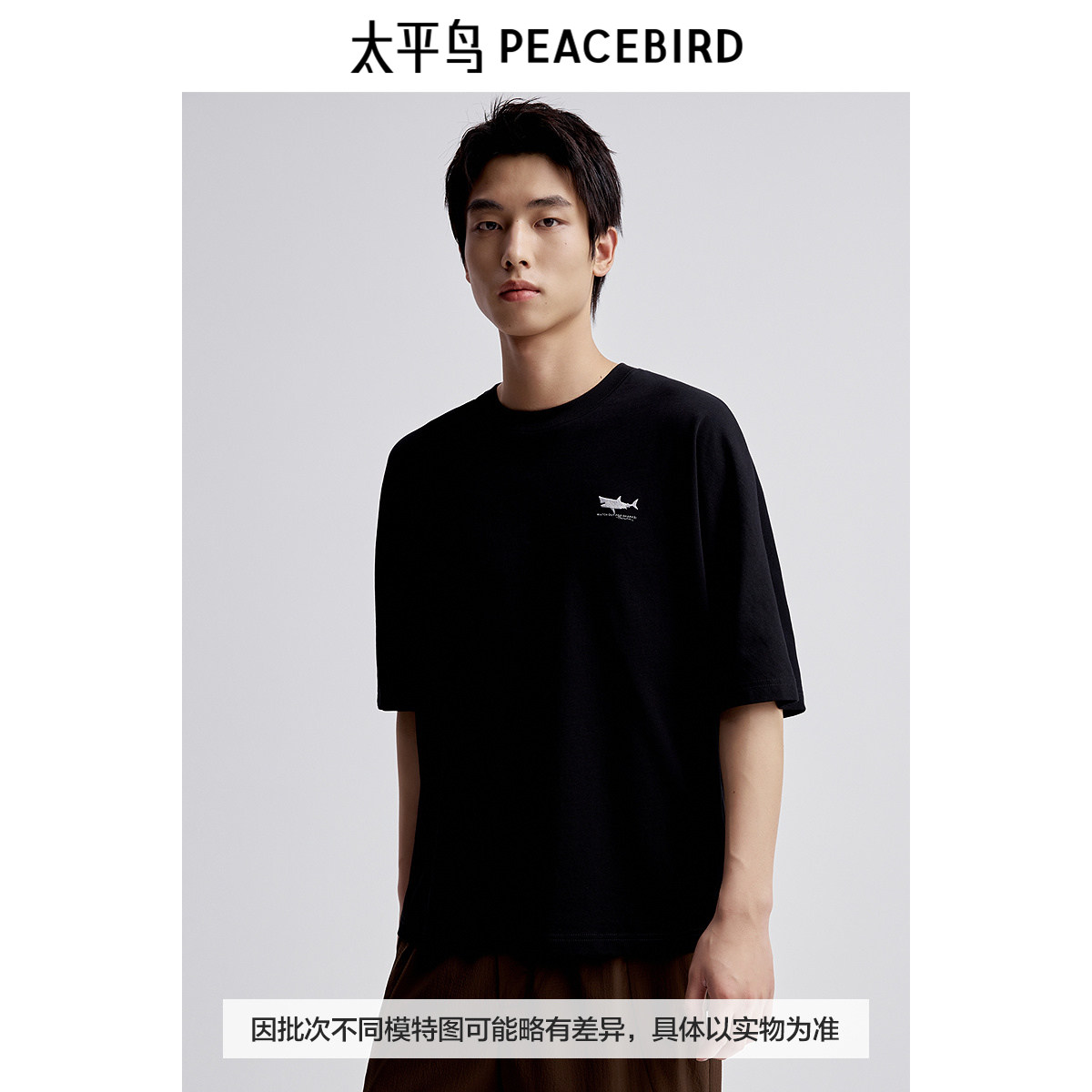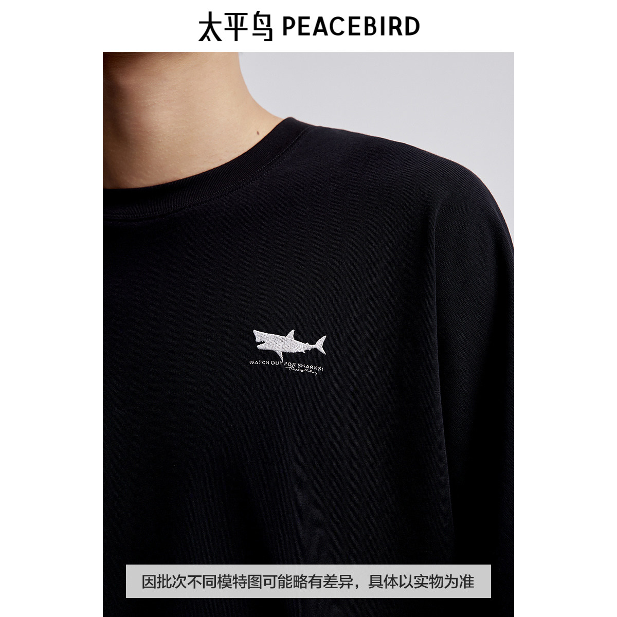 太平鸟男装 大白鲨联名背后印花短袖T恤男B1CNE2408