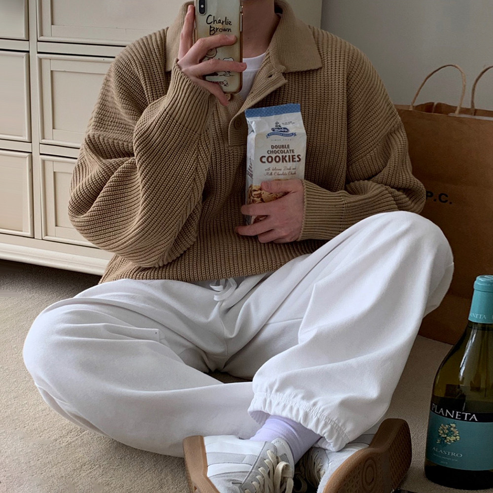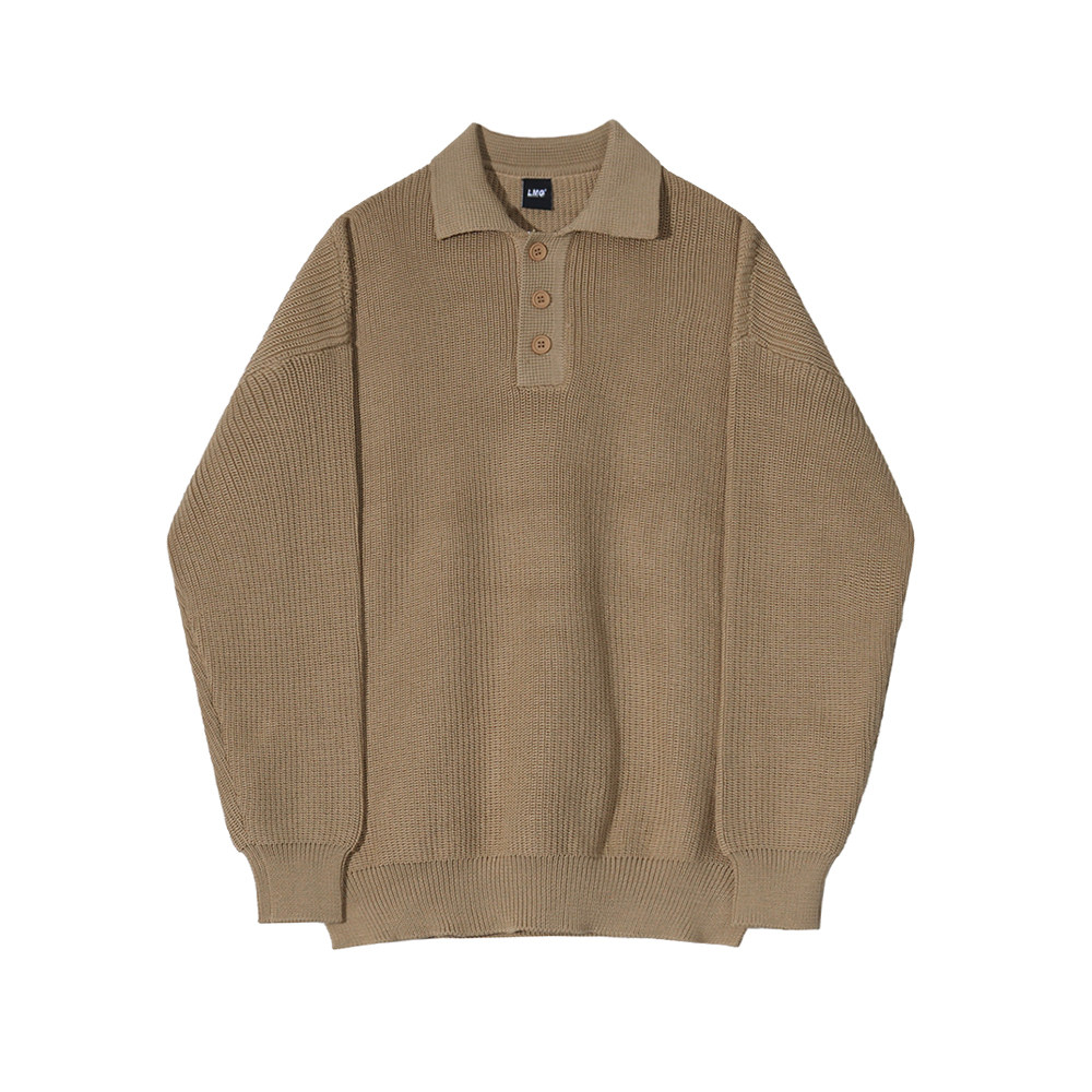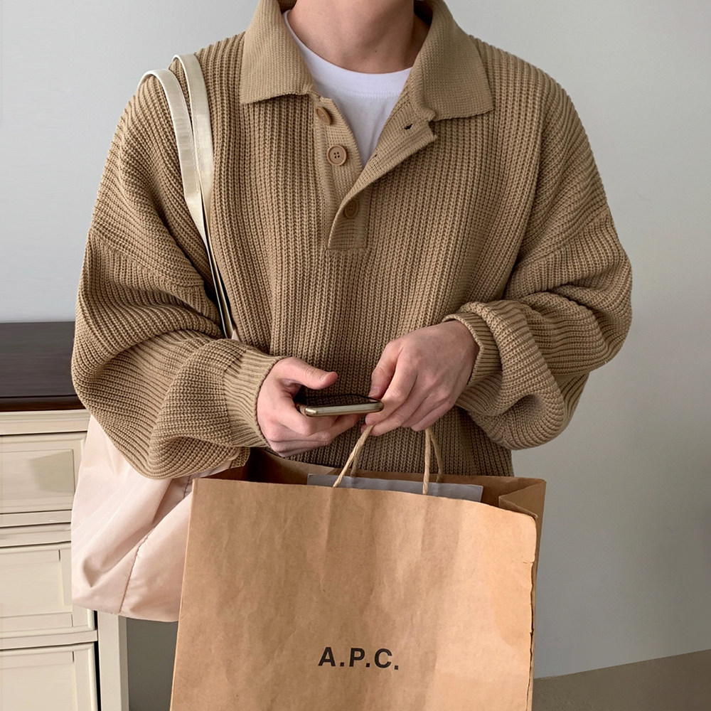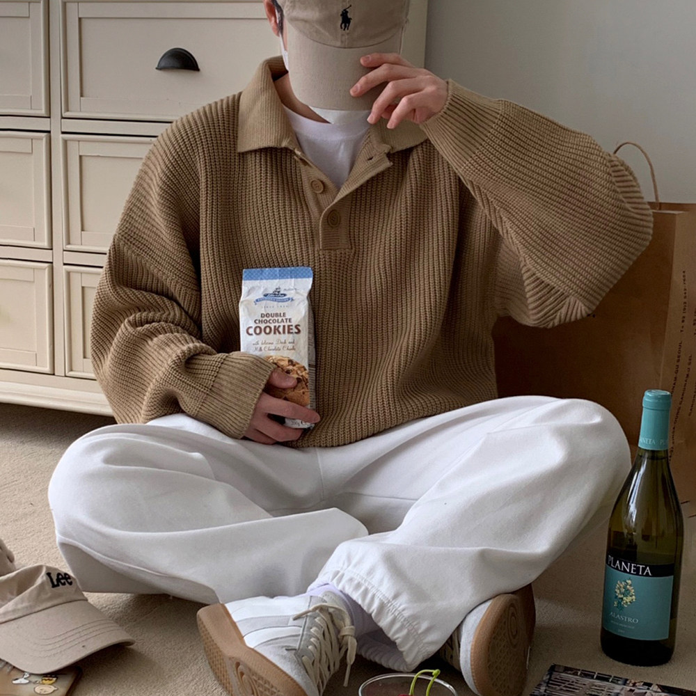 MRCYC百搭polo领长袖毛衣男秋冬季韩系宽松翻领针织衫上衣外套潮