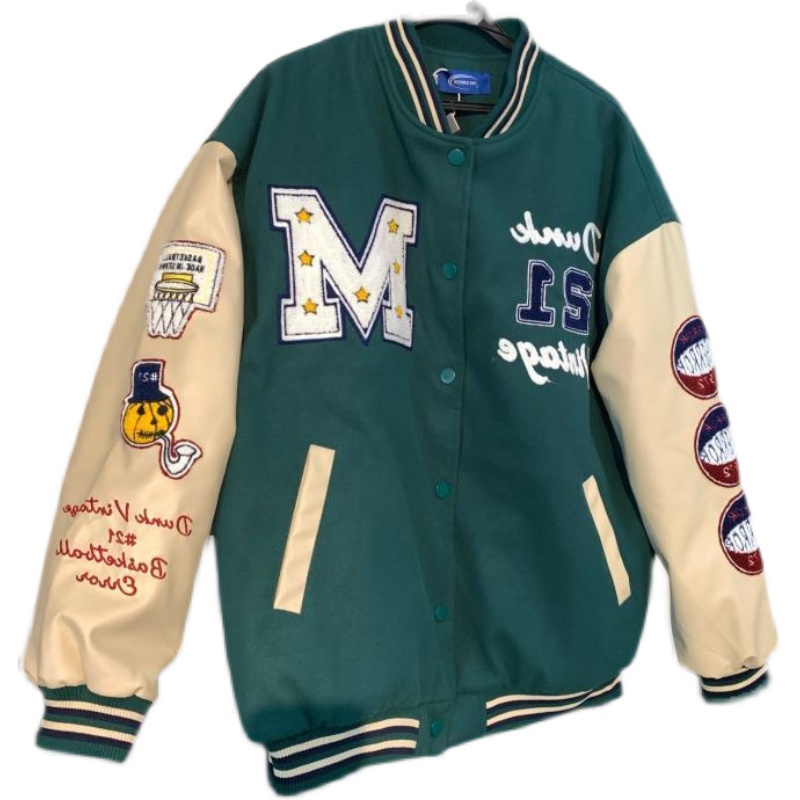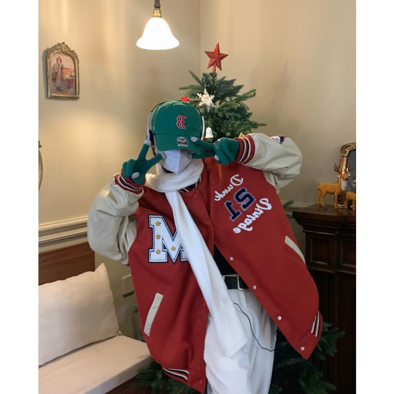 国潮拼接皮袖棒球服外套男女2025春季新款美式复古刺绣情侣夹克