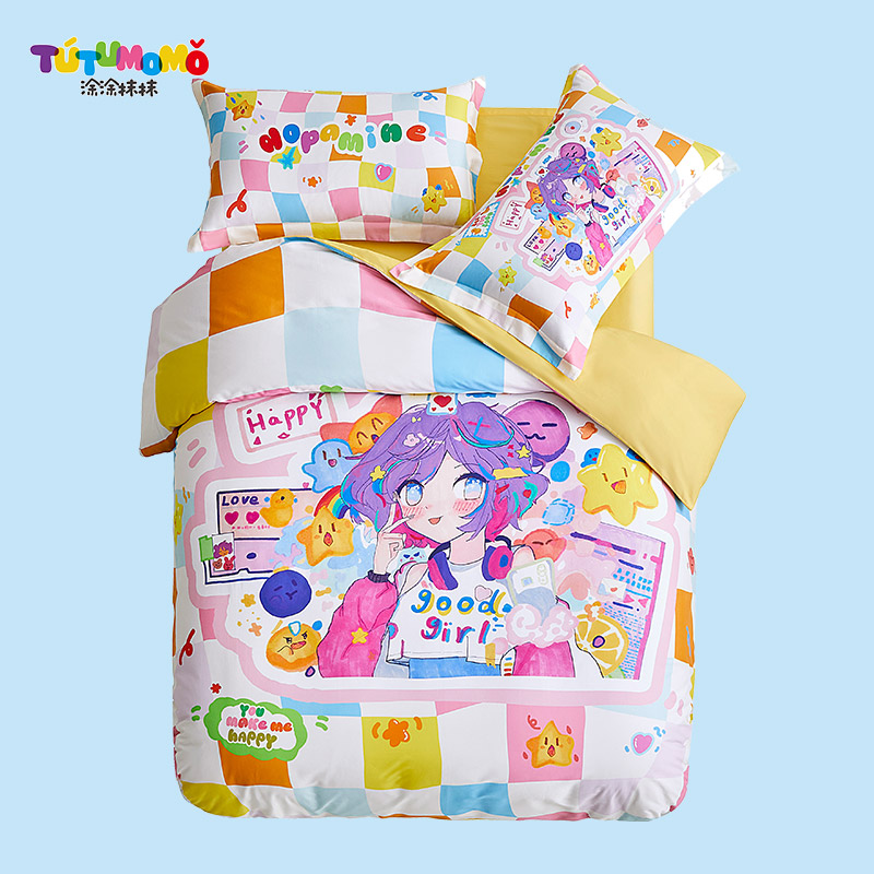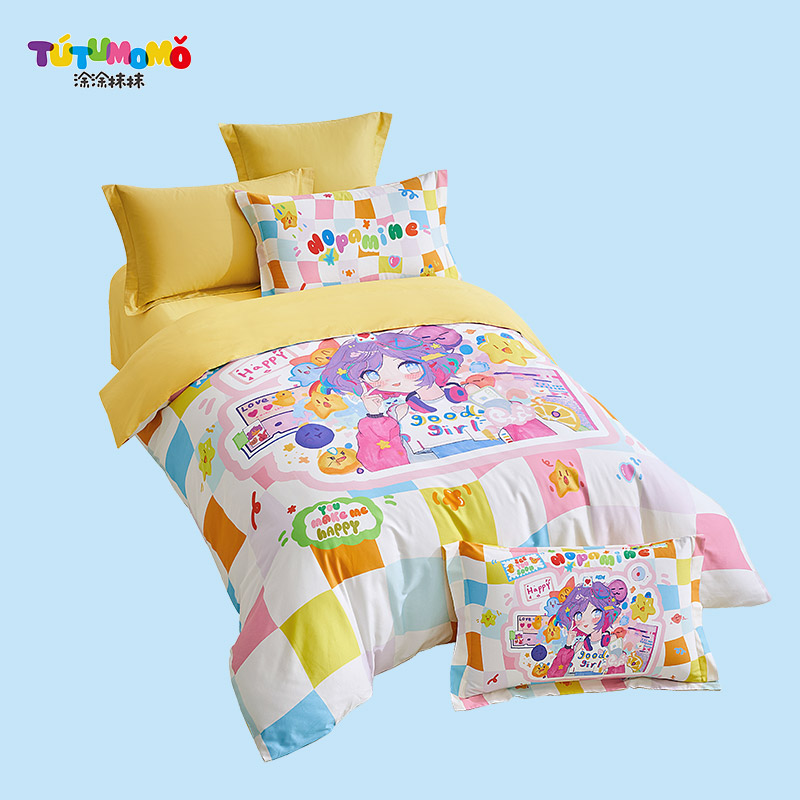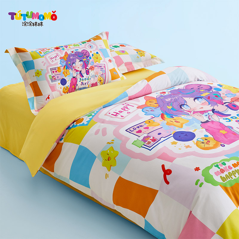 涂涂抹抹儿童四件套女孩公主风高端床品被单床单可爱少女纯棉床单