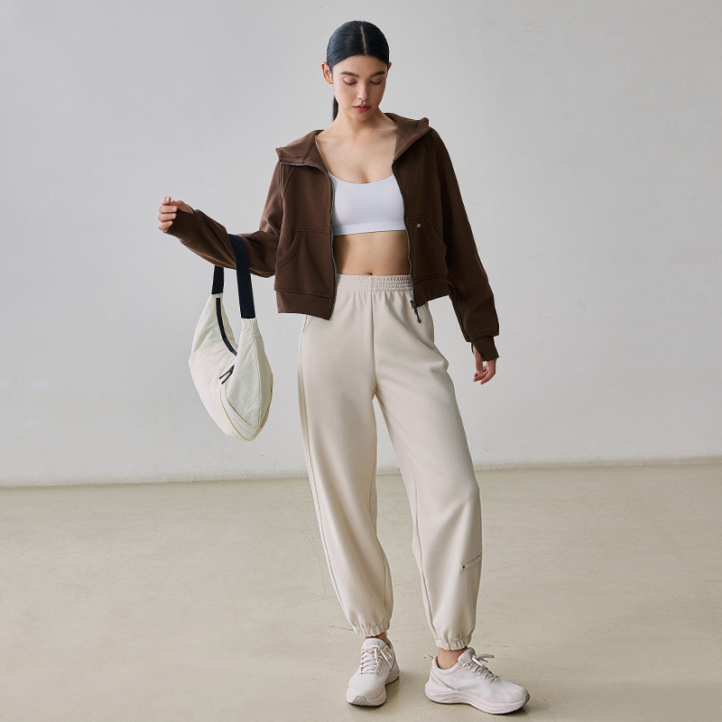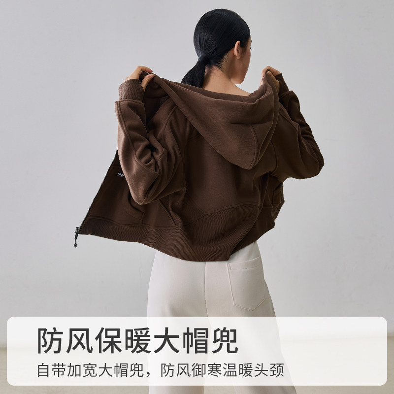 gigt极吉运动外套女加绒保暖瑜伽服长袖新款户外连帽宽松休闲卫衣