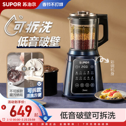 苏泊尔旗舰可拆洗低音破壁机家用多功能自动加热豆浆机辅食料理机