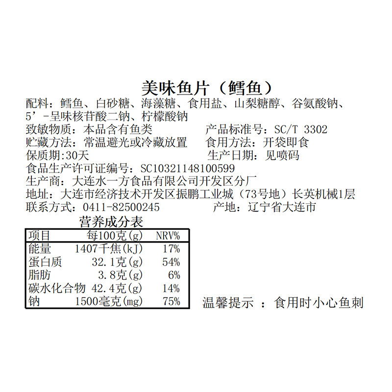 水一方现烤鳕鱼片250g大连特产袋装鳕鱼片即食烤鱼干海味零食