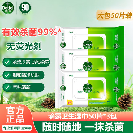 滴露卫生湿巾50片*包抽取式杀菌消毒湿纸巾便携装非酒精出行消毒