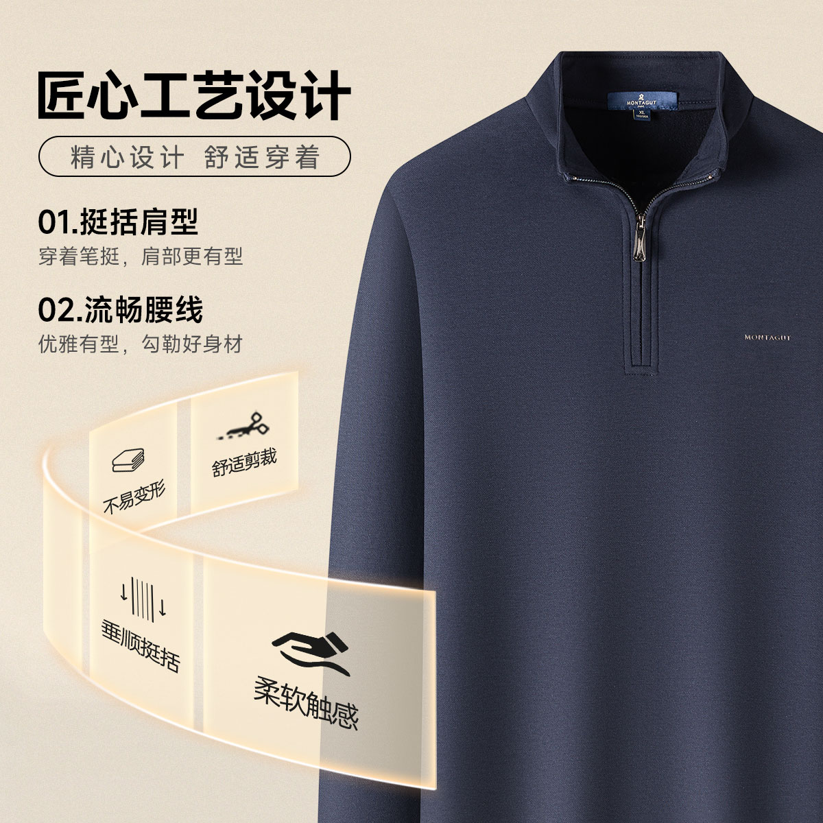 梦特娇2025秋季新品男士长袖卫衣T恤立领拉链设计款式休闲百搭