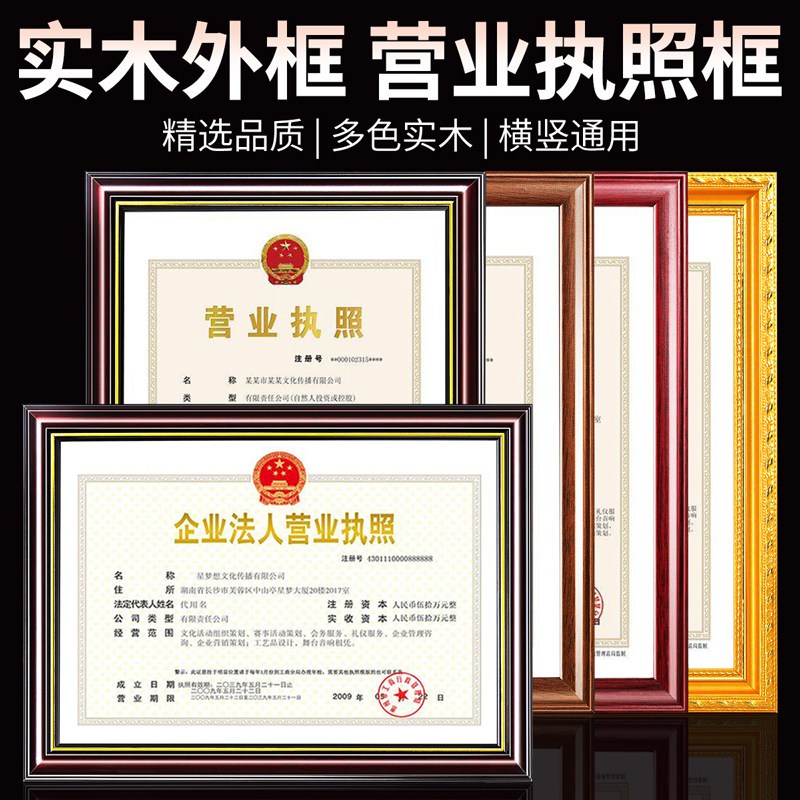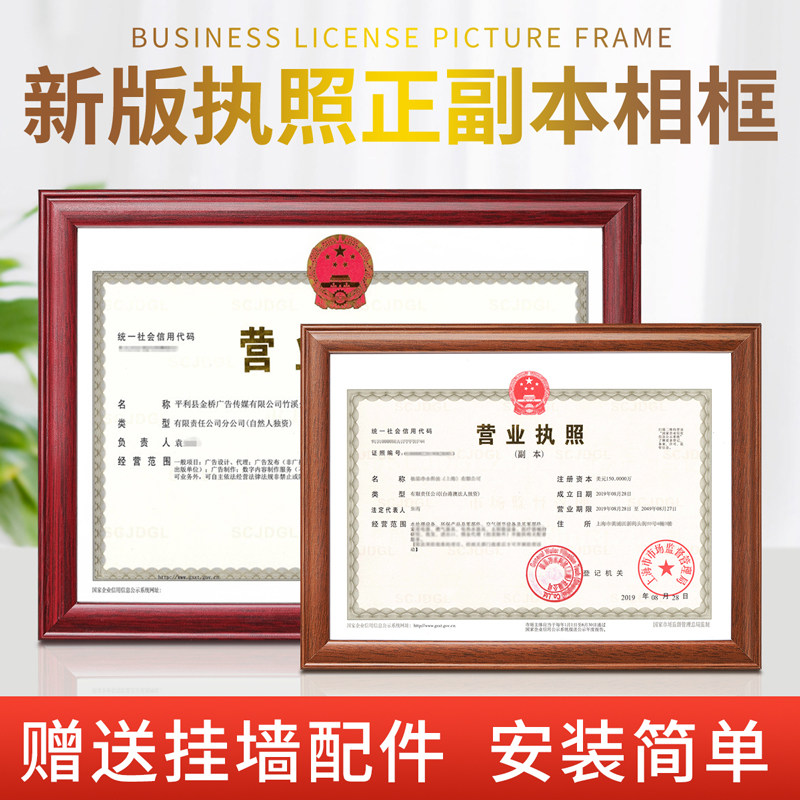 实木营业执照框架挂墙正副本a3食品卫生许可证框a4证书奖状展示框