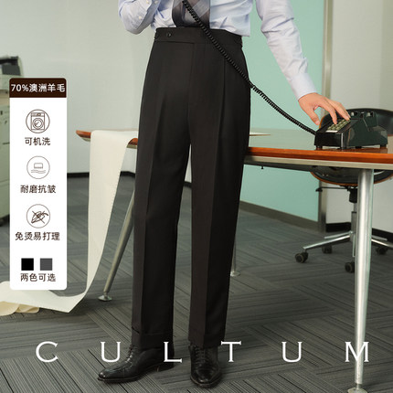 【70澳洲美丽诺羊毛】CULTUM可机洗免熨烫单褶西裤男商务通勤长裤