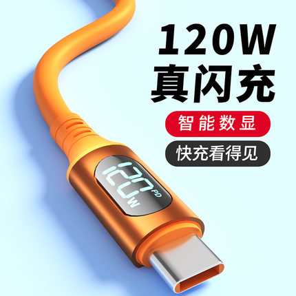 智能数显Type-c超级快充120W适用华为VIVO小米OPPO荣耀手机充电线笔记本电脑iPad平板充电线加长2米