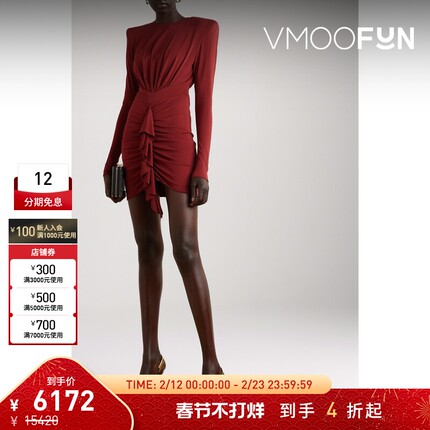【折扣】Alexandre Vauthier女士早春安可拉红缩褶迷你连衣裙