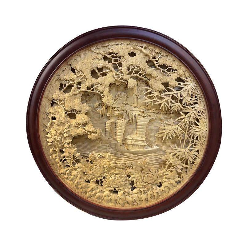 东阳木雕中式屏风实木玄关迎客松单面雕花隔断座屏客厅支持定制