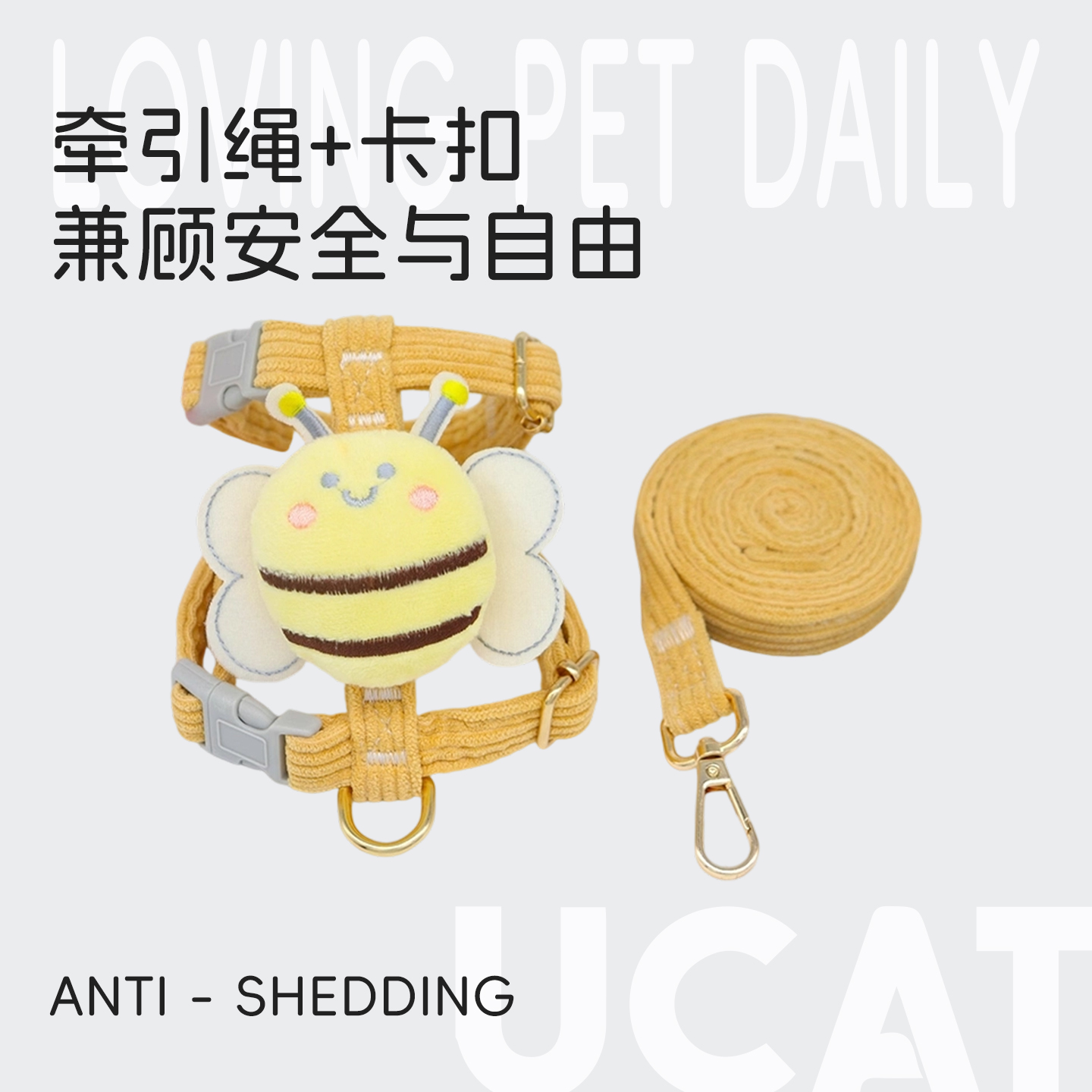 ucat牵引绳防挣脱外出专用猫咪绳子小蜜蜂背带溜小型犬用品 |己曲