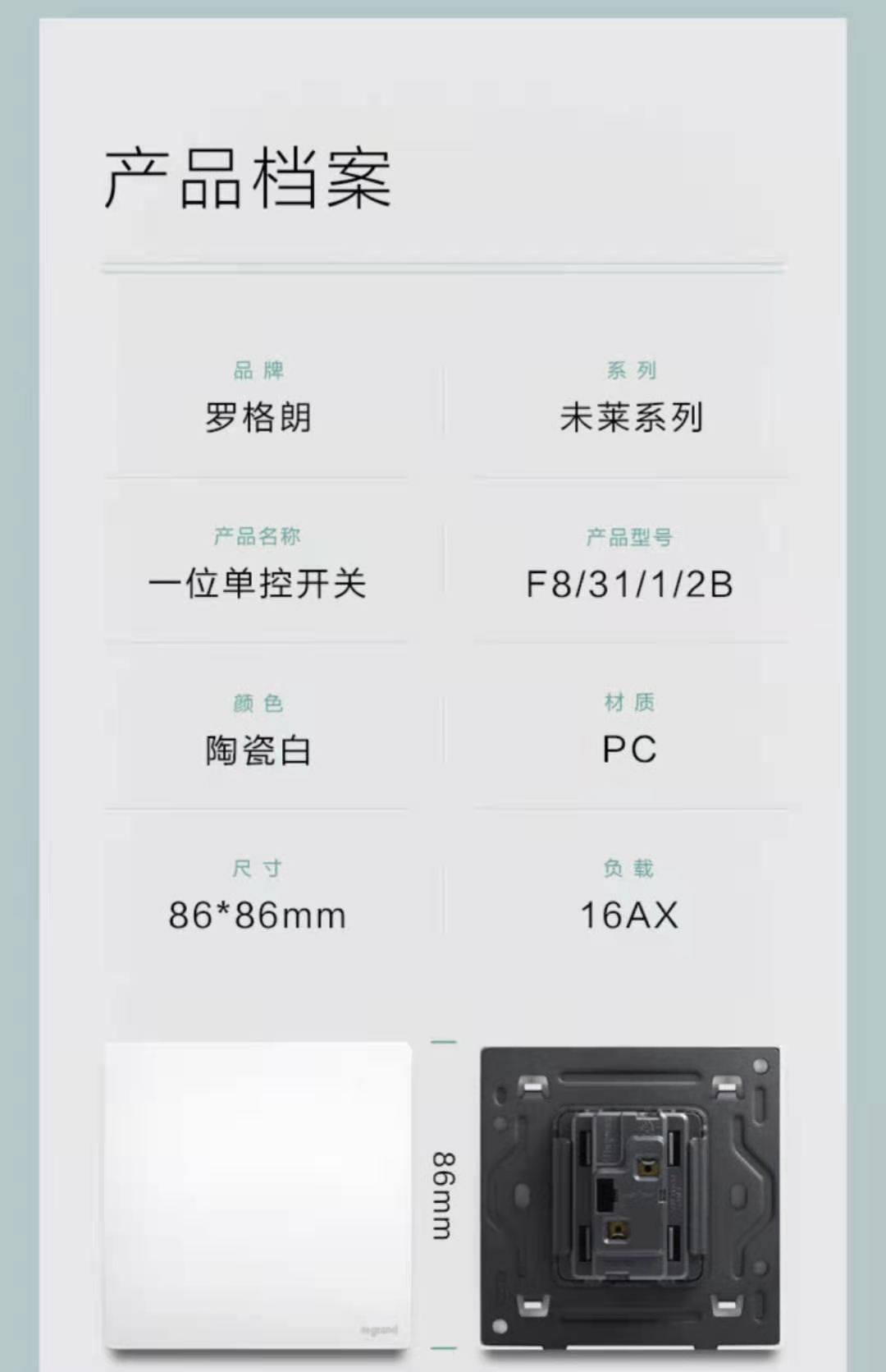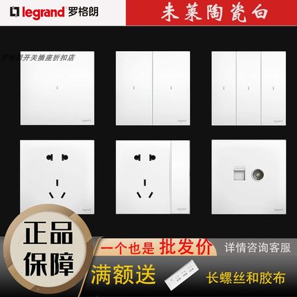 罗格朗未莱陶瓷白弧面超薄开关插座面板单开USB五孔快充 定制喷色