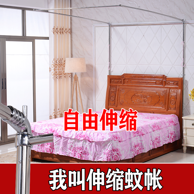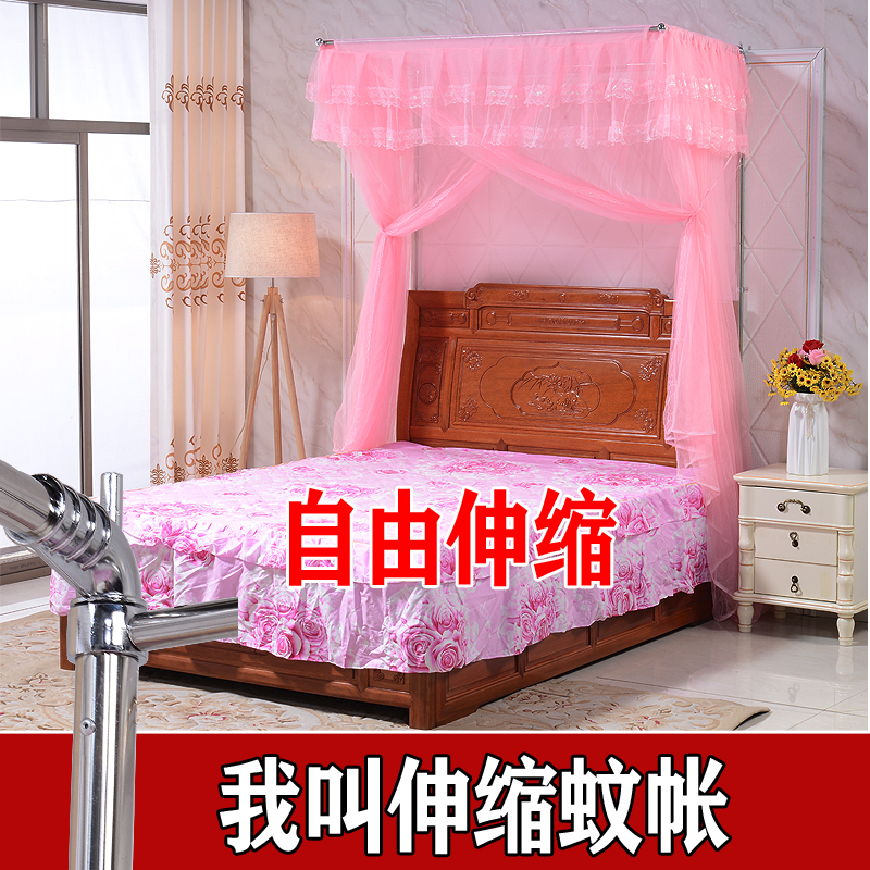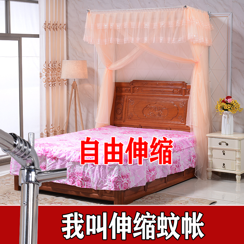 蚊帐伸缩方型不锈钢支架加厚加密宫廷1.358m新款钓鱼竿免安装家用