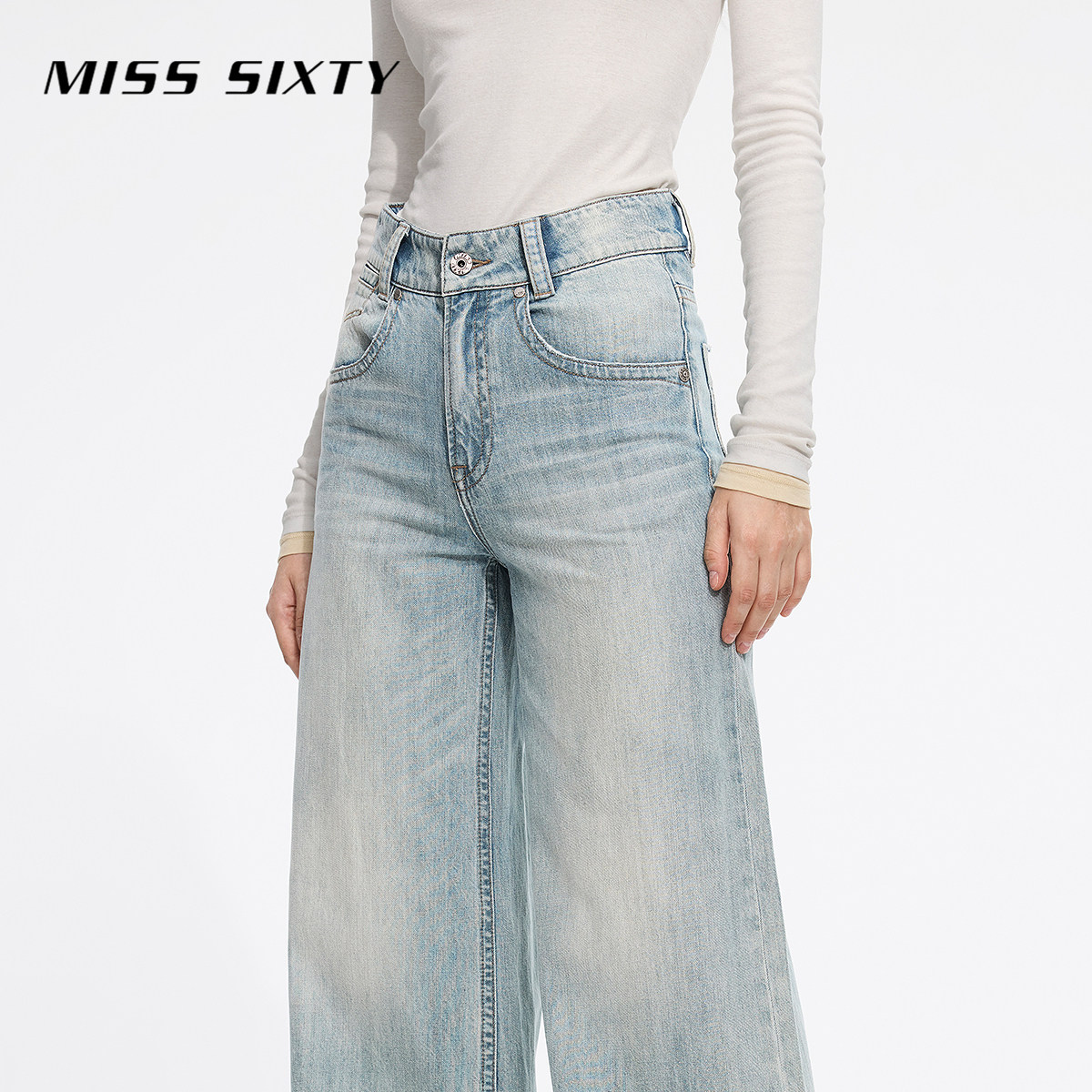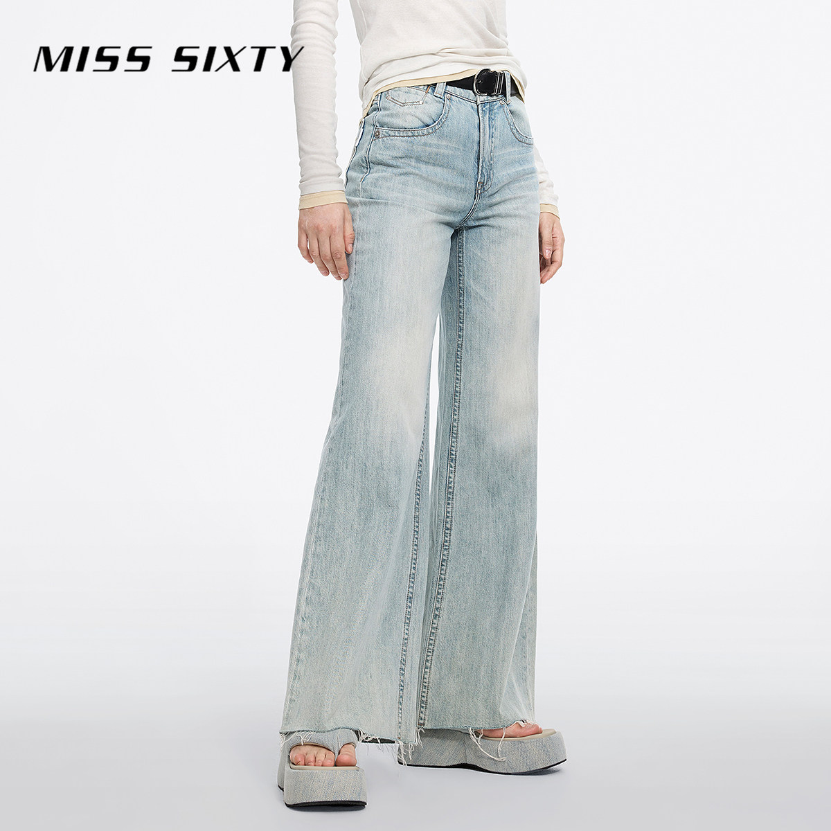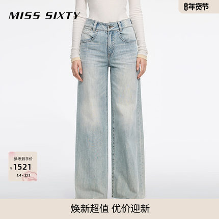 [廓形广角裤][进口牛仔面料]Miss Sixty2025春秋牛仔裤女微喇叭裤