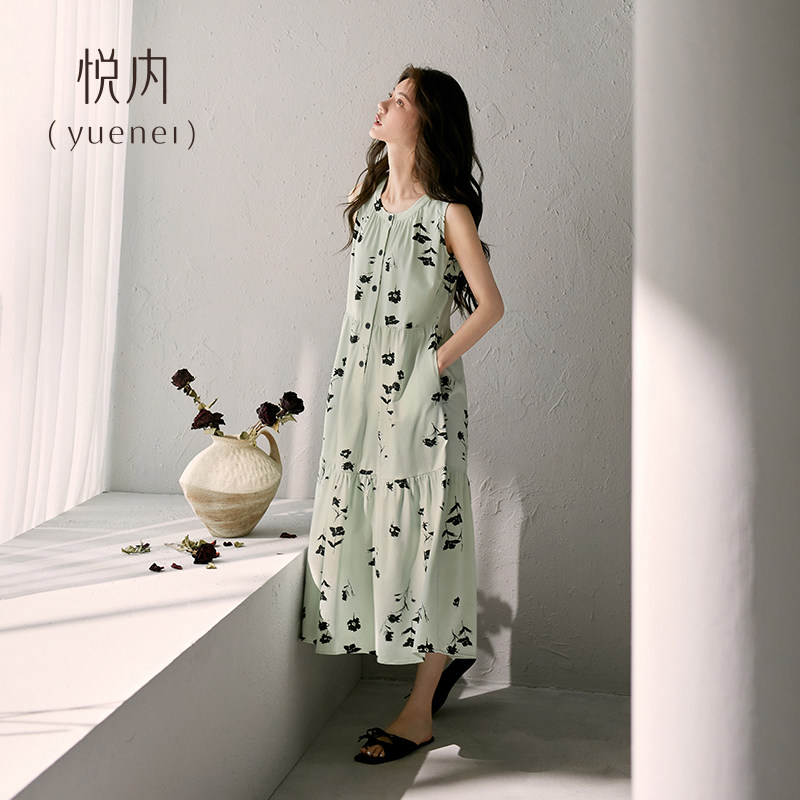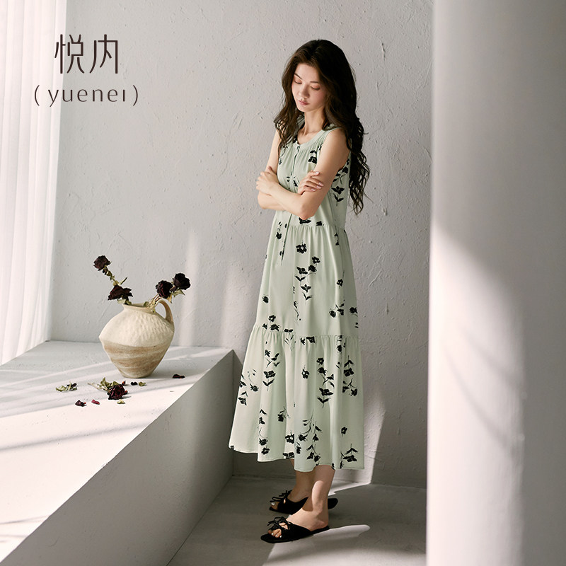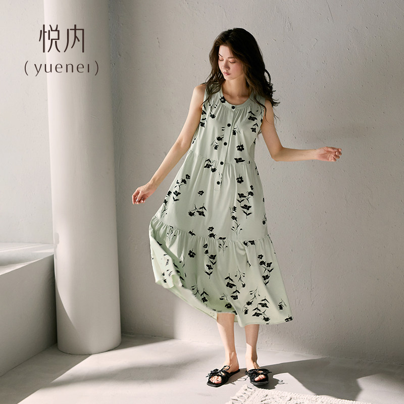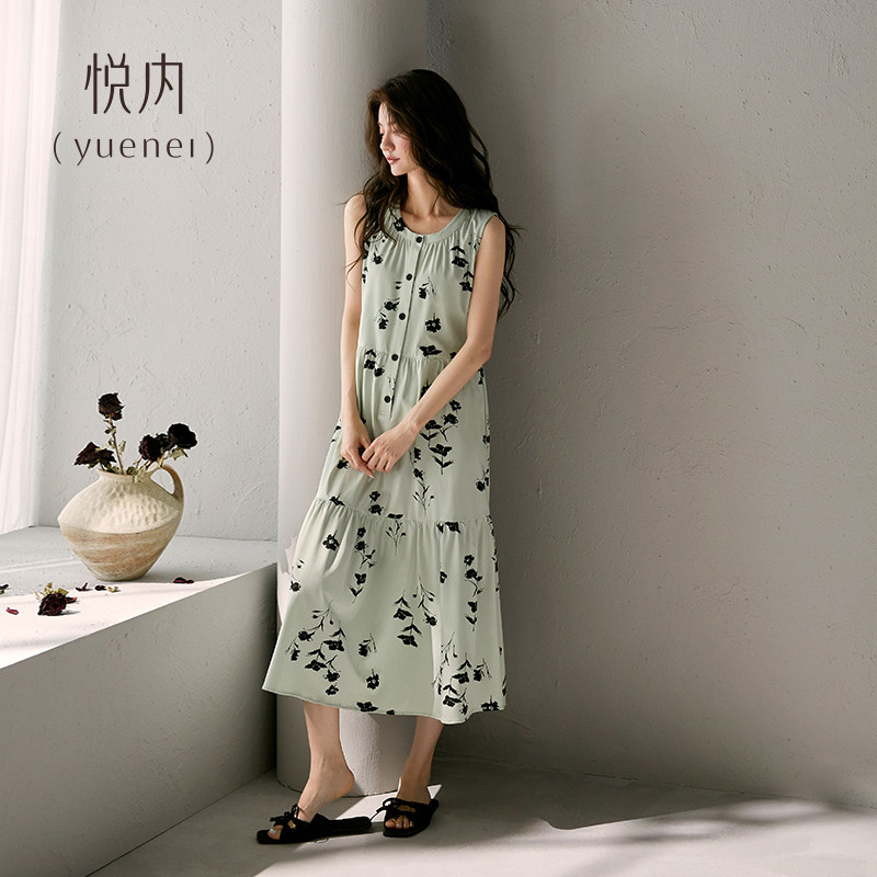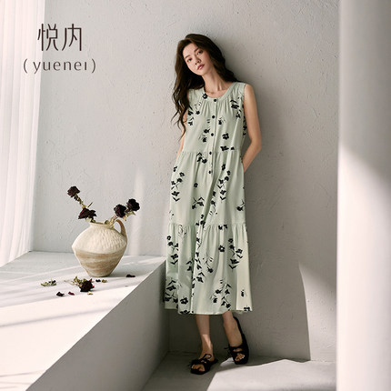 悦内睡裙女士睡衣夏季纯棉无袖背心夏款开衫碎花可外穿出门连衣裙