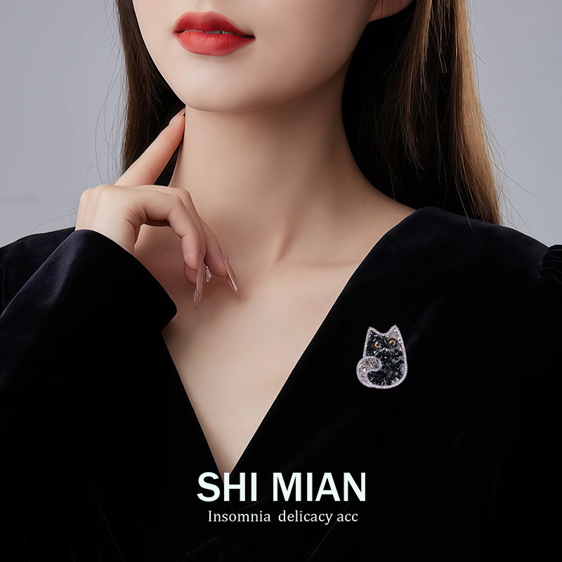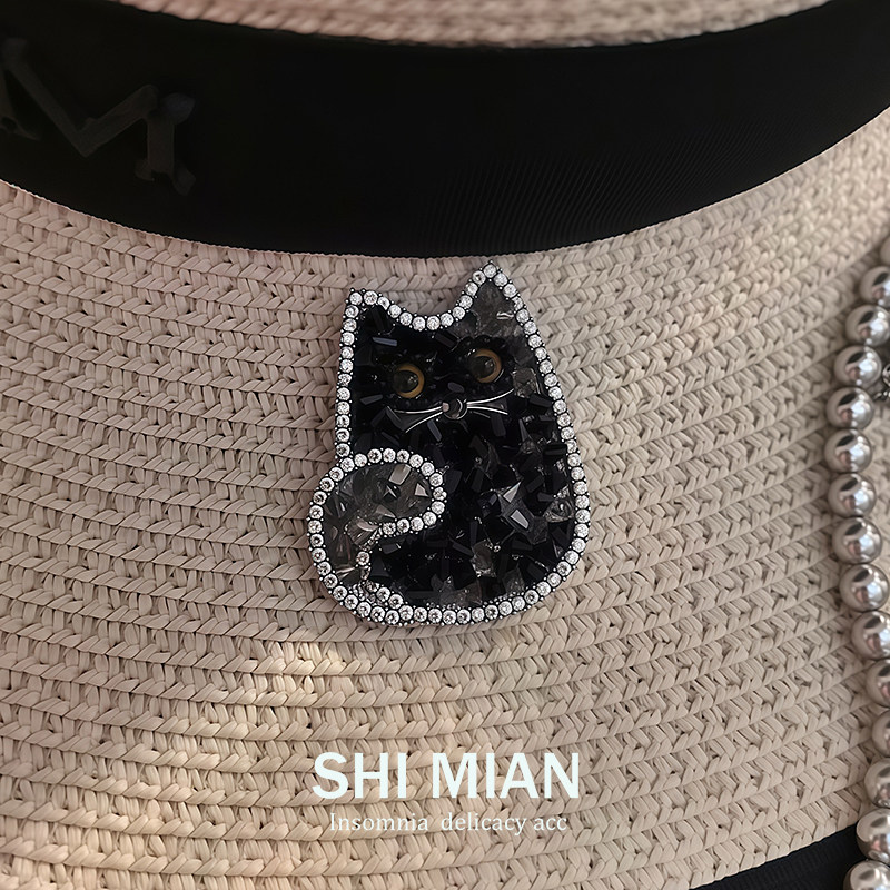可爱双色黑猫胸针女创意水晶胸花设计感别针外套包包帽子配饰礼物