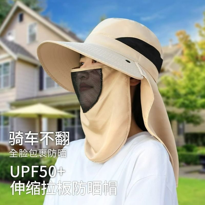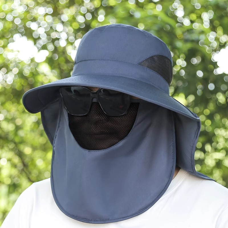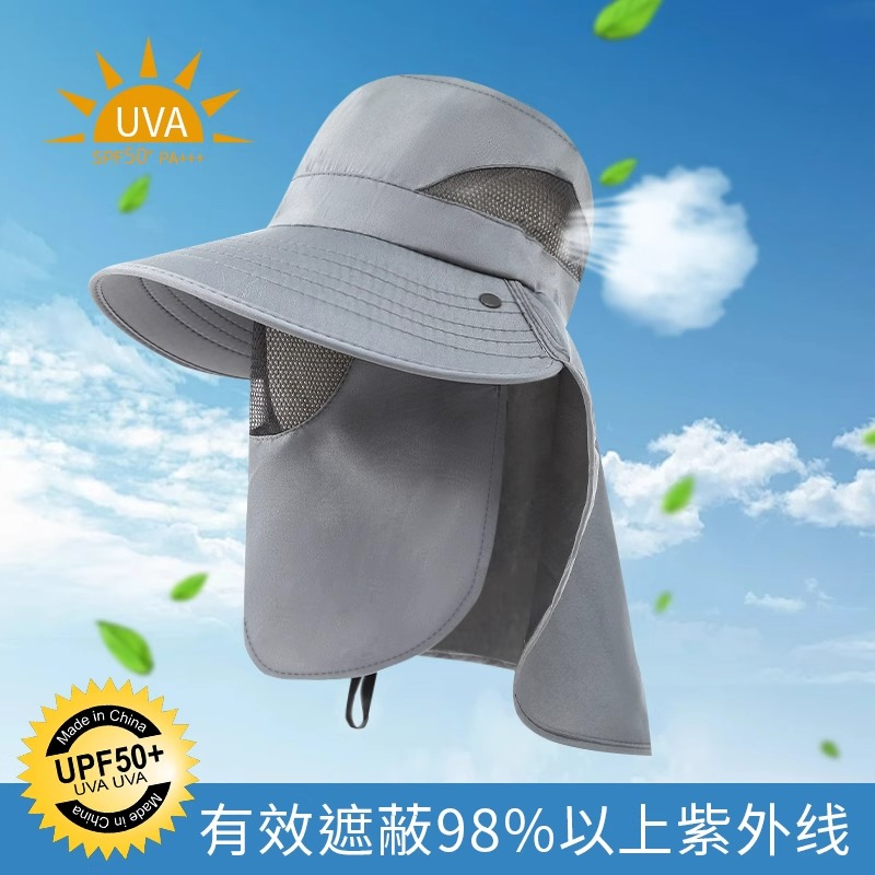 防紫外线帽子男钓鱼帽渔夫帽户外防晒太阳帽遮脸登山遮阳采茶帽女