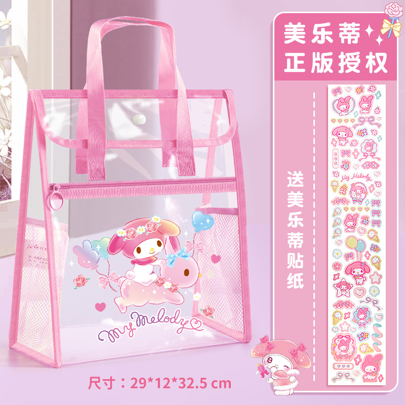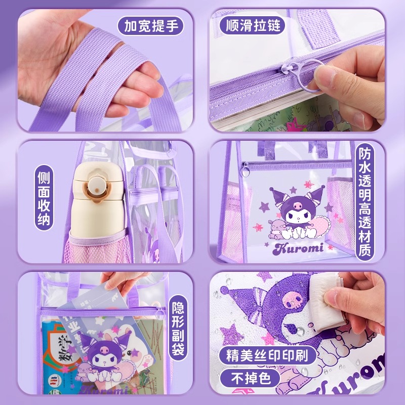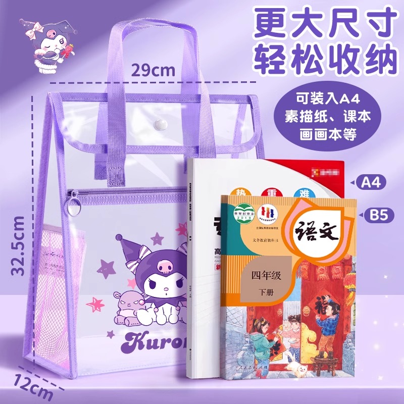 三丽鸥正版库洛米透明补习袋小学生手提袋拎书袋女生美术袋儿童女孩可爱补课包学习班作业袋学习考试专用袋子